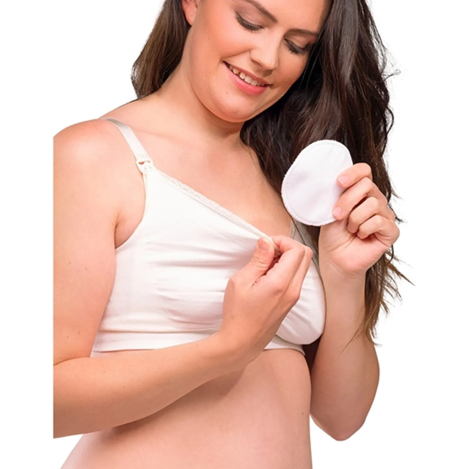 Det åndbare væskeskyende lag absorberer fugt for maksimal komfort hele dagen. Med 100% silke er disse ammeindlæg bløde og skånsomme mod din hud, hvilket gør dem ideelle til brug under dine amme-BH’er.