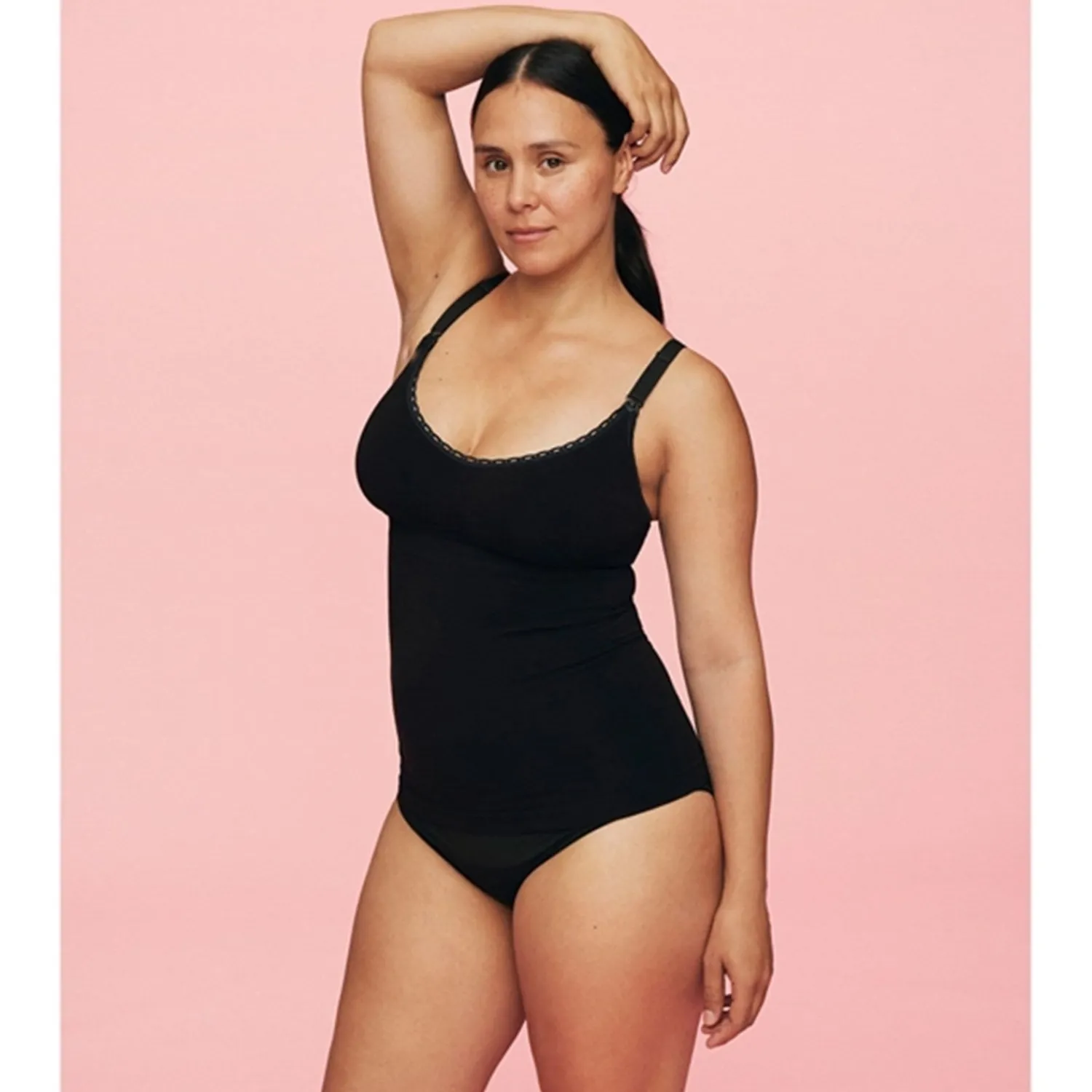 Opgrader din ammeoplevelse med momkind Ammetop Black, skabt til den moderne mor. Denne ammetop forener komfort og brugervenlighed med en stilfuld edge, der gør den til et must-have i din garderobe. Certificeret med OEKO-TEX standarder, er den lavet af 81% økologisk bambus viskose, 14% polyamid og 5% elastan for ultimativ blødhed og strækbarhed.