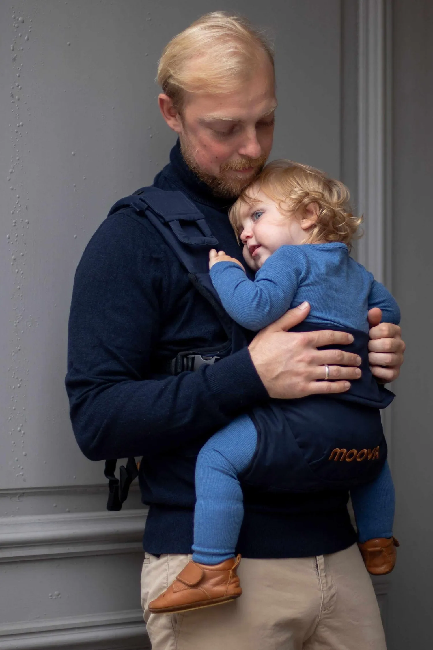 Med Moova får du en bæresele udviklet af en af de aller dygtigste indenfor babybæring. Henrik Norholt har designet en bæresele som eliminerer behovet for fremadvendt bæring – som i øvrigt aldrig bliver 100% ergonomisk for baby. Derimod kan du med Moovas frontpanel, øge bevægeligheden ved at lyne ned med de to lynlåse. Det giver barnet frihed til bevægelse og giver mulighed for, at kunne følge meget mere med.