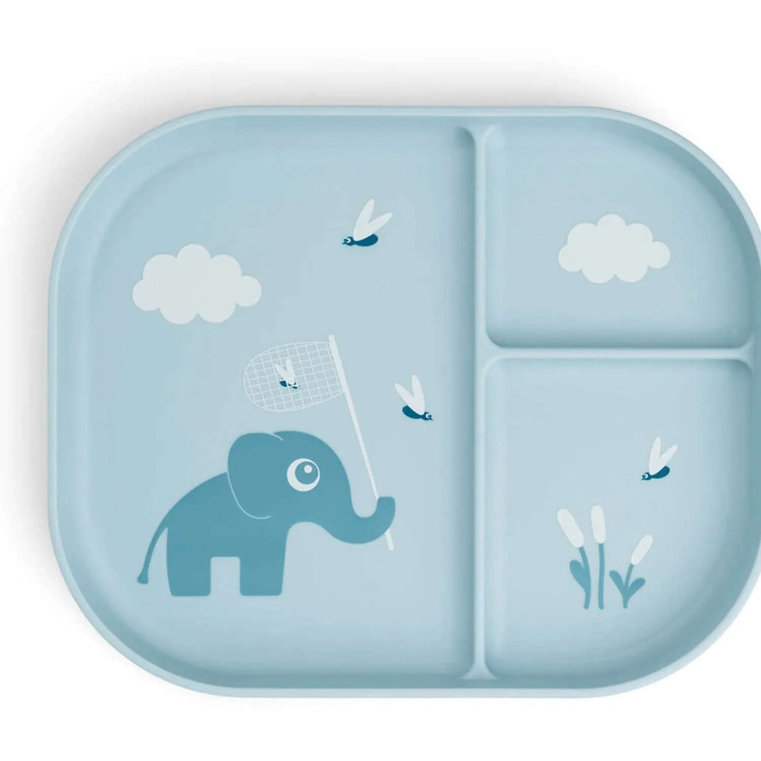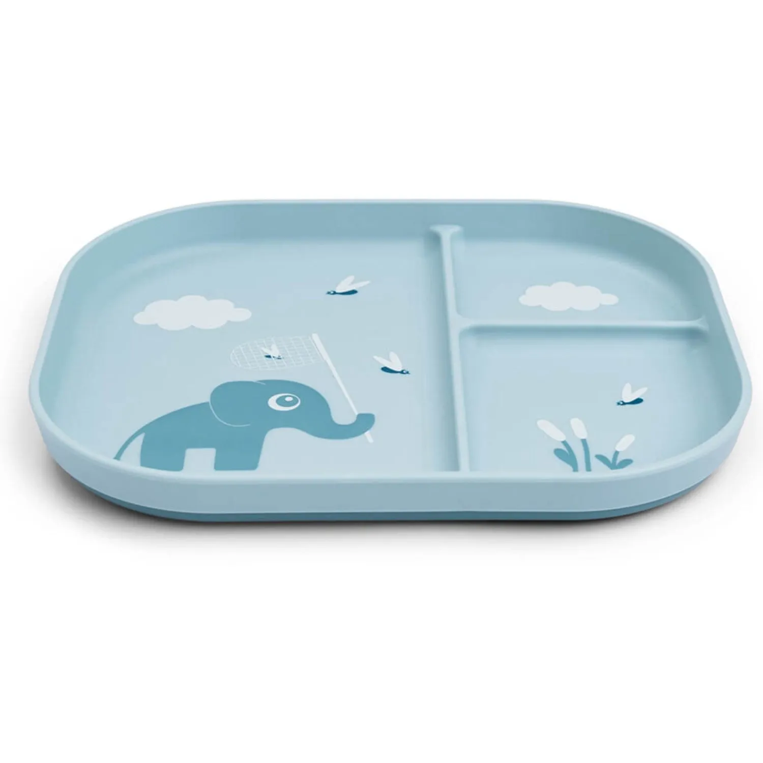Med DonebyDeer Blå Foodie inddelt tallerken Elphee kan dit barn nyde måltider på en sjov og sikker måde. Denne tallerken har en antiskrid-base, der holder den stabilt på bordet, og tre rum, der gør det nemt at adskille forskellige typer mad. Lavet af BPA-fri og fødevaregodkendt PP materiale, sikrer tallerkenen sikkerhed og holdbarhed. Den er praktisk til hverdagsbrug, da den tåler både mikrobølgeovn og opvaskemaskine. Dens genanvendelige natur støtter en bæredygtig livsstil, og det charmerende blå design med Elphee motivet inspirerer små børn til at udforske og nyde deres måltider.