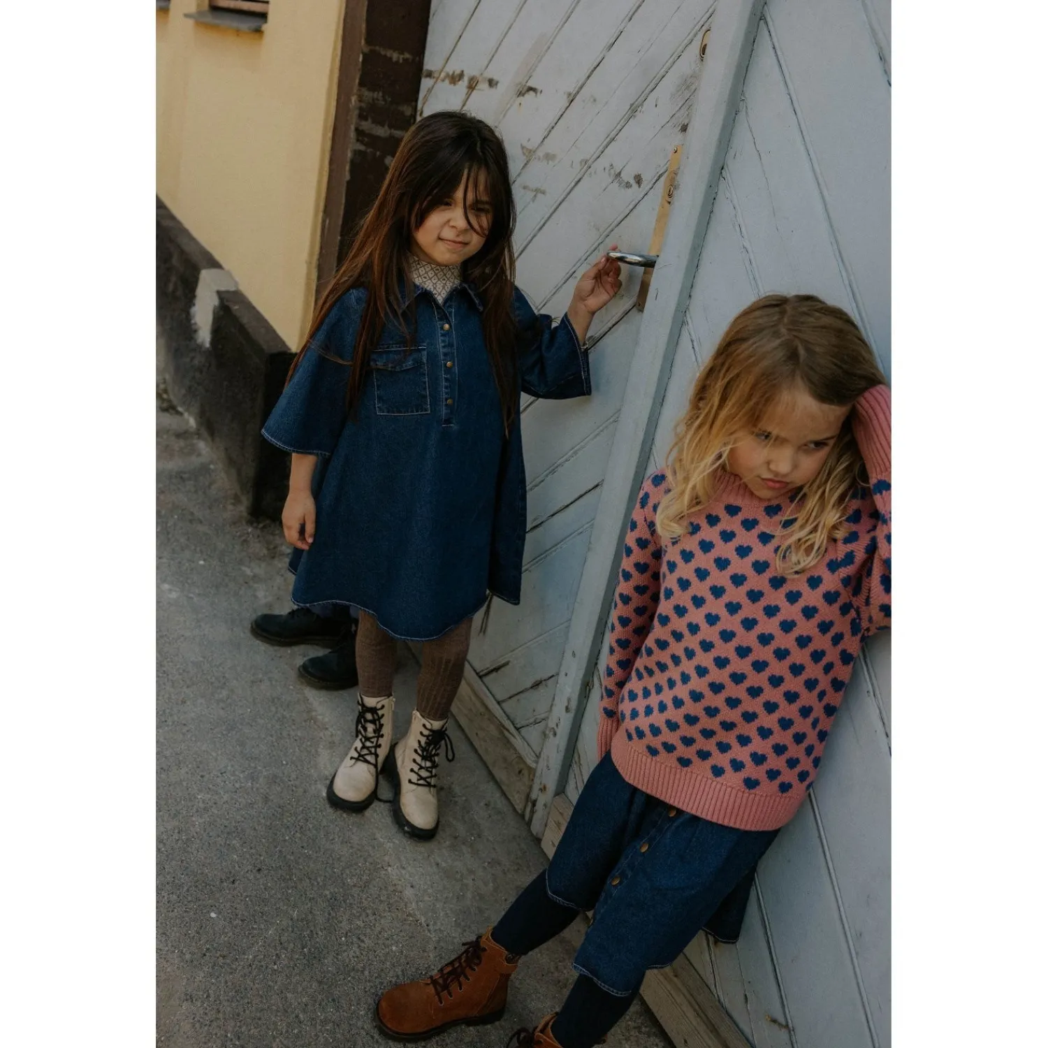 Oplev den charmerende ‘Fliink Dark Denim Blue Don’ denim nederdel, designet specielt til børn. Denne nederdel er fremstillet af 100% bomuld og kommer med stilfulde knapper langs fronten, der giver et klassisk udtryk. Den indbyggede elastik i taljen sikrer en behagelig pasform og gør den let at tage af og på for små hænder. Farven i mørk denim er perfekt til både dagligt brug og særlige lejligheder som vinterfester.