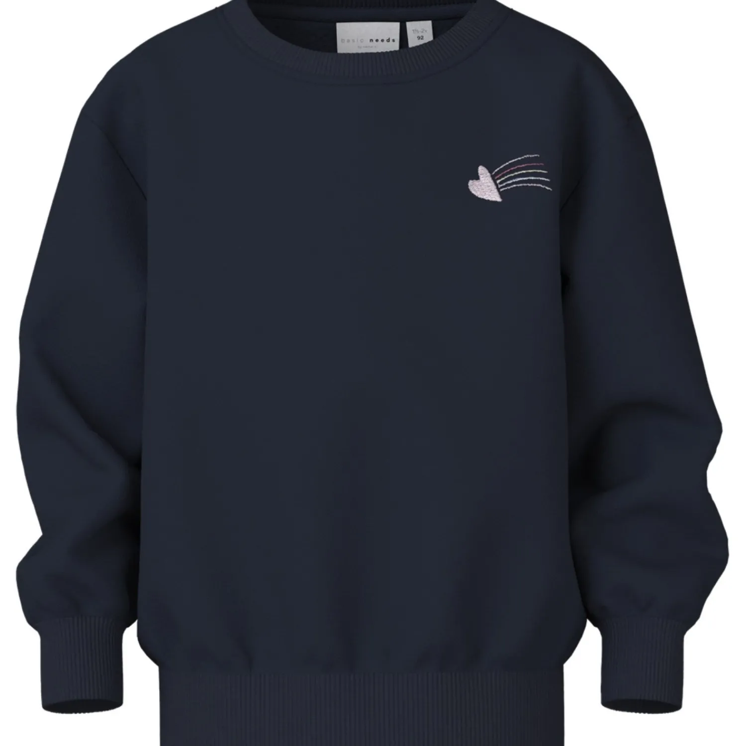 Med en klassisk rund hals og lange ærmer tilbyder denne sweatshirt en afslappet pasform, der er perfekt til leg og hverdagsbrug. Den robuste konstruktion gør den ideel til gentagen brug og vask, og farvens dybde sammen med det søde broderi tilføjer et unikt touch, der vil skille sig ud.