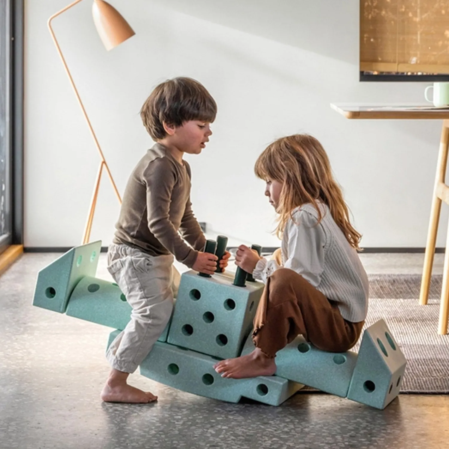Opdag en verden af kreativ leg med MODU Dreamer sættet i Ocean Mint/Forest Green. Dette inspirerende byggesæt fremmer aktiv leg og motorisk udvikling hos børn. Med 34 dele, herunder klodser, samlepinde og drejehjul, kan dine børn konstruere over 25 forskellige legeredskaber, lige fra en gåvogn til de små til spændende klatretårne for de eventyrlystne.