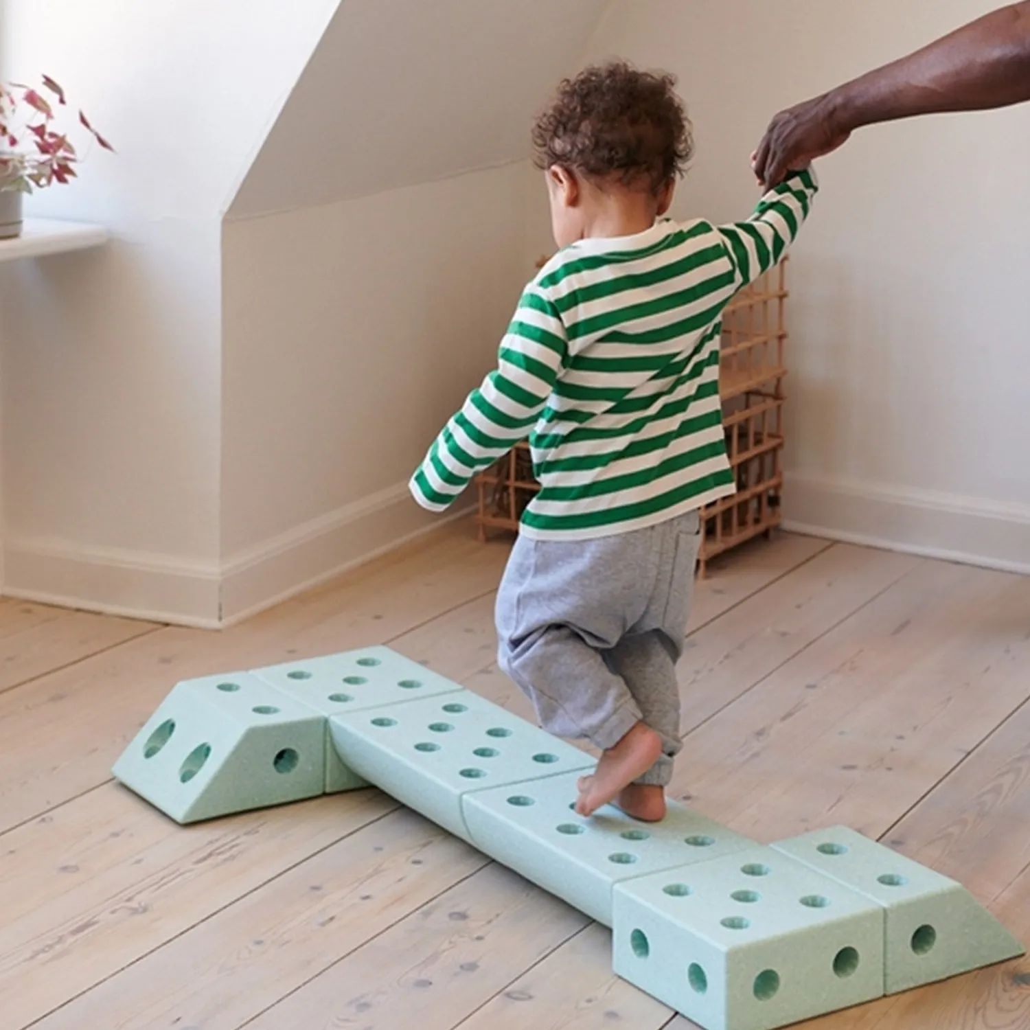 Med store byggeklodser i skum, tilbyder dette sæt en legende tilgang til leg. Uanset alder, vil børn nyde den sjove og udfordrende leg, som fremmer motorisk udvikling og aktiv leg gennem barndommen. Lad børnene bruge hele kroppen til balancerende, gående, rullende, klatrende, gyngende, hoppende eller kørende sjov med dette alsidige sæt.