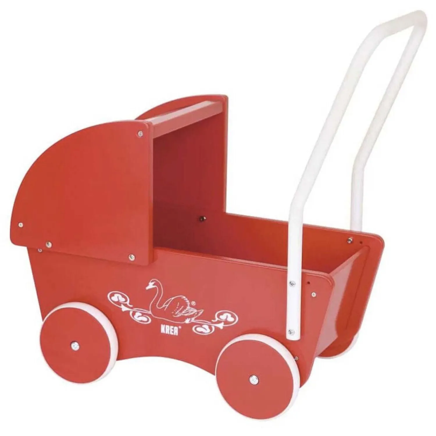 Lad dukkerne sove sødt i denne klassiske dukkevogn i træ fra KREA med fint svanemotiv på siderne – måske kan mor endda huske den fra sin egen barndom. Dukkevognen er i et tidløst design med små gummibelagte hjul, der sikrer en stabil og mere lydløs kørsel. Dukkevognen måler: H: 42 x B: 22 x L: 44 cm. – Indvendige mål: L: 32 x B: 17 cm. Leveres usamlet, men er let at samle. Max. vægt: 25 kg. Fra 18 mdr.