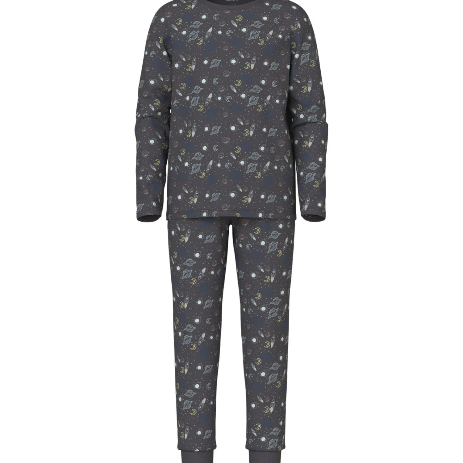Lad dine børn drømme sig væk i Name It Forged Iron Pyjamas Iron Space Noos, designet med øje for detaljen. Dette behagelige natsæt i mørkegrå og med spændende rumsdesign er lavet af blød økologisk bomuld, der sikrer en god nats søvn. Med justerbare ærmer og ben for optimal pasform er denne pyjamas ideel til hverdagsbrug. Nem at vaske og vedligeholde, perfekt for det aktive barn.