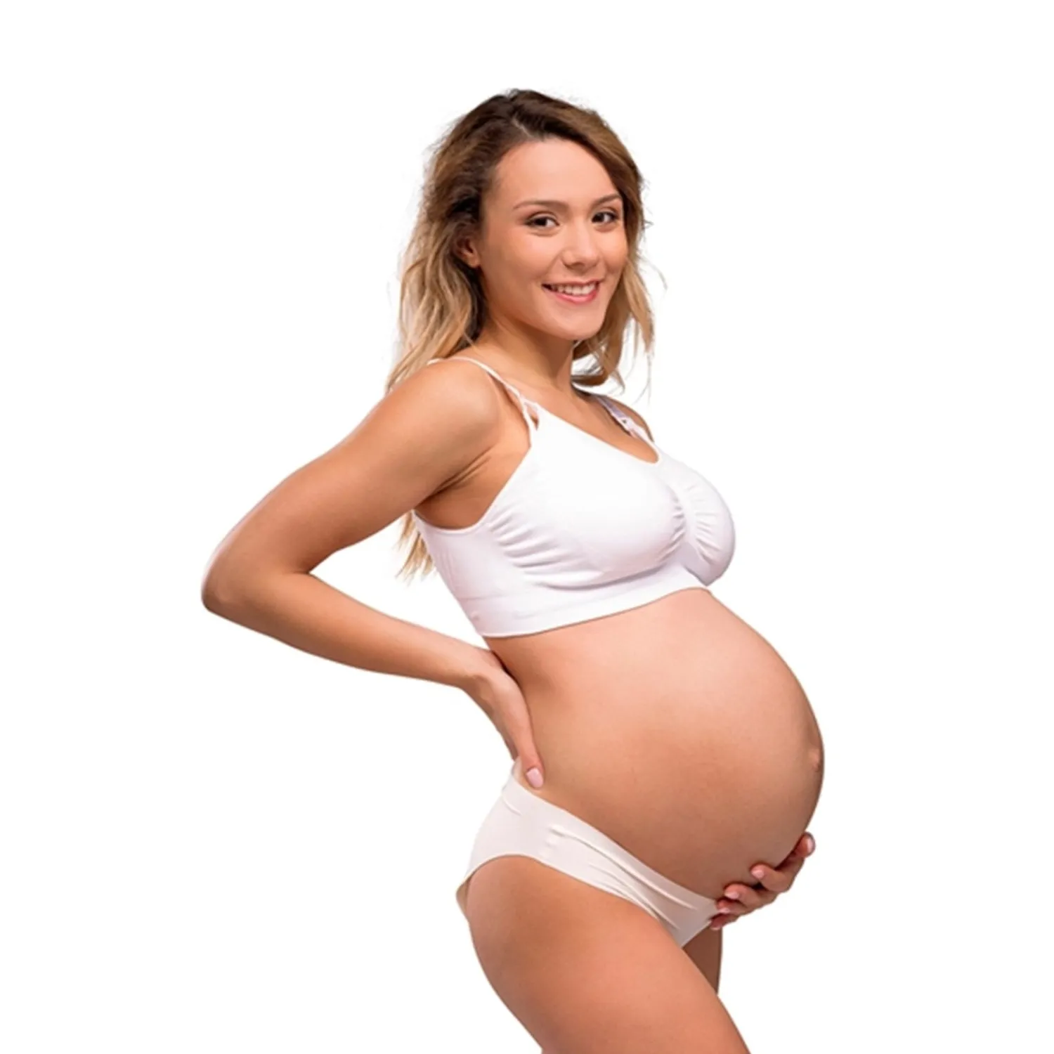 Carriwell Graviditets- og Amme-BH med indlæg i hvid er den ultimative løsning for den gravide eller ammende mor, der ønsker komfort og funktionalitet. Denne BH er designet til at give optimal støtte under hele graviditeten og ammeperioden.