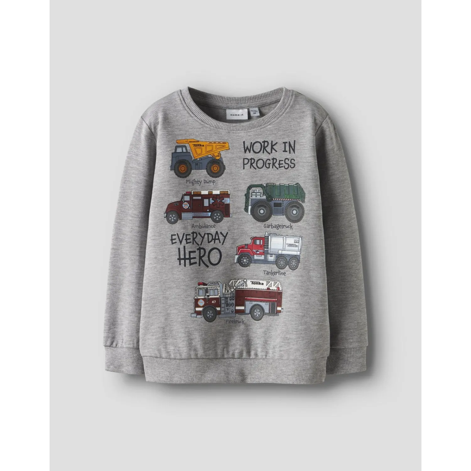 Mød Name It Grey Melange Nmmorson Tonka Nreg Sweat Bru Cplg sweatshirten, der bringer sjov og komfort til dit barns hverdag. Fremstillet i blødt, børstet sweatstof med en lækker blød inderside for ultimativ komfort hele dagen.