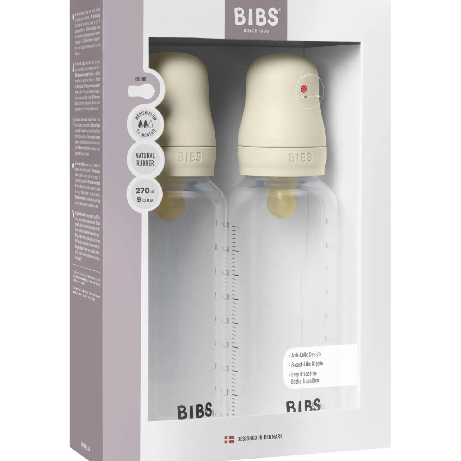 Denne flaske er fri for BPA og overholder EU-standard EN14350, hvilket gør den til et sikkert valg for børn fra 0 måneder og opefter. Med Bibs Ivory Baby Flasken tilbydes ikke blot ernæring, men også en beroligende oplevelse for dit barn hver gang.