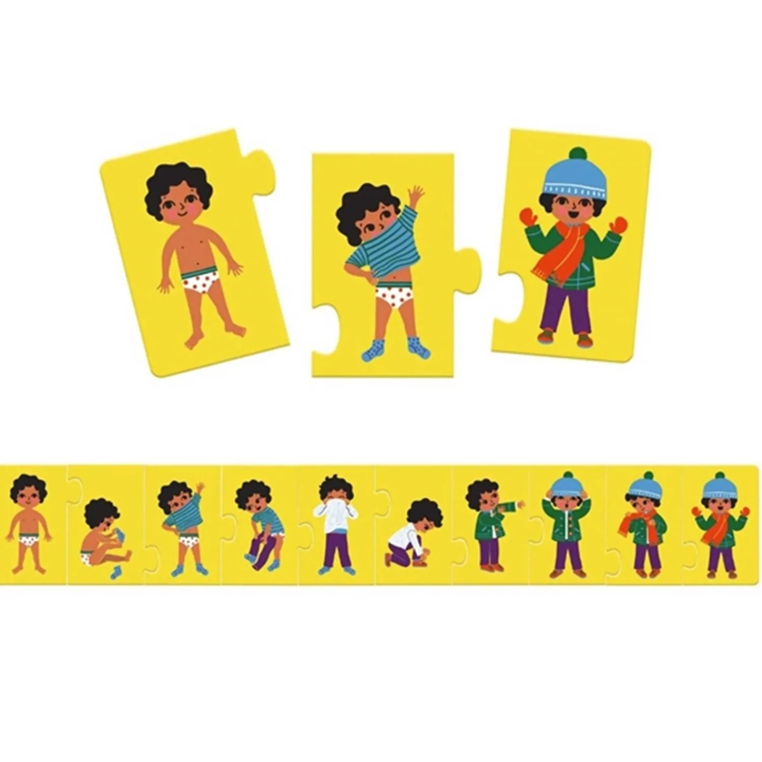 Oplev en sjov og lærerig aktivitet med Djeco Lærespil Jeg Klæder Mig På. Dette søde lærespil har charmerende illustrationer, der guider børn gennem påklædningsprocessen. Med 10 brikker og dimensioner på 70 x 11 cm er dette spil perfekt til børn fra 3 år.