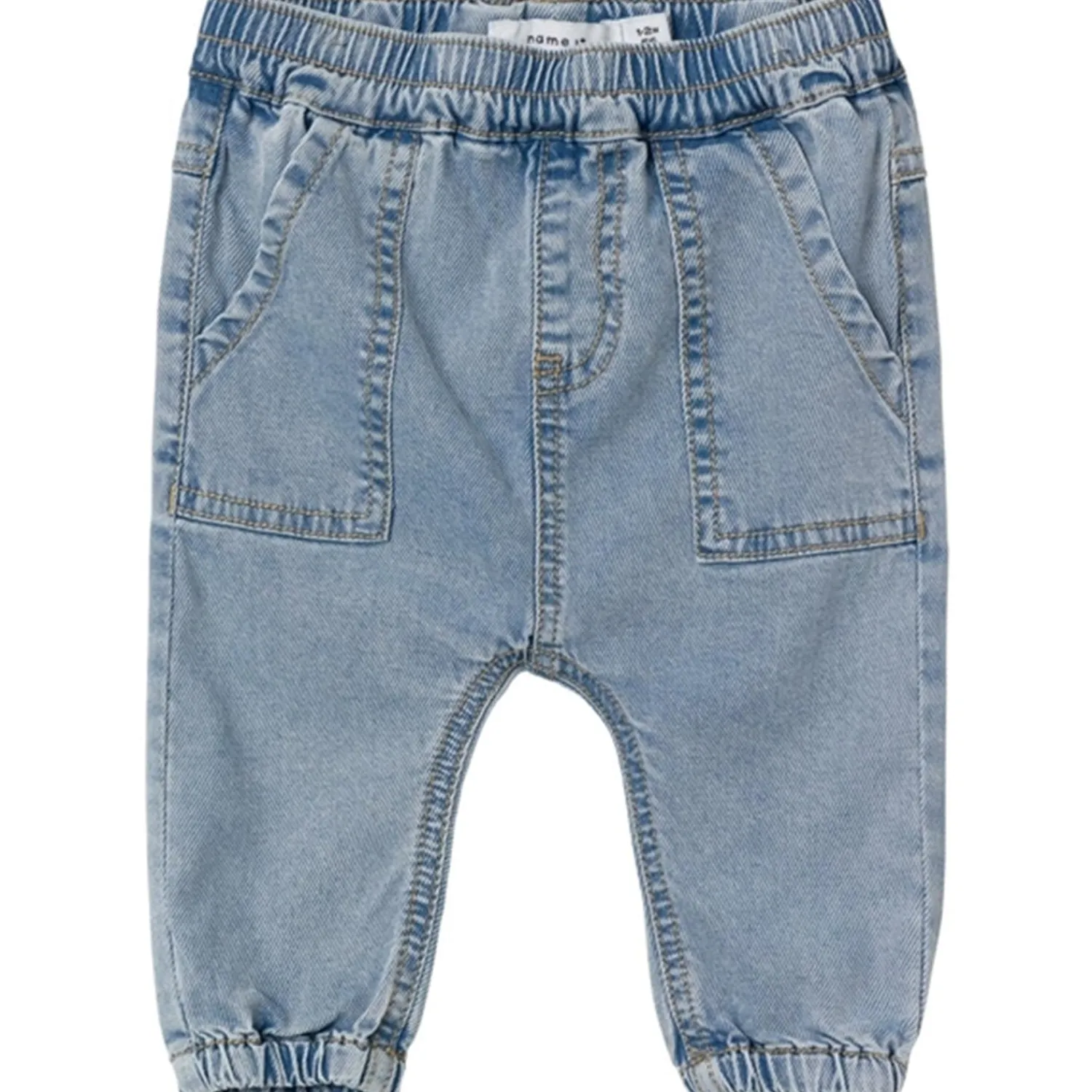 Opdag disse lette og stilfulde Name it Light Blue Denim Ben Jeans, perfekte til din nyfødte. Lavet af 71% lyocell TENCEL™, 20% genanvendt polyester, 8% viskose og 1% elastan, disse jeans kombinerer komfort med bæredygtighed.