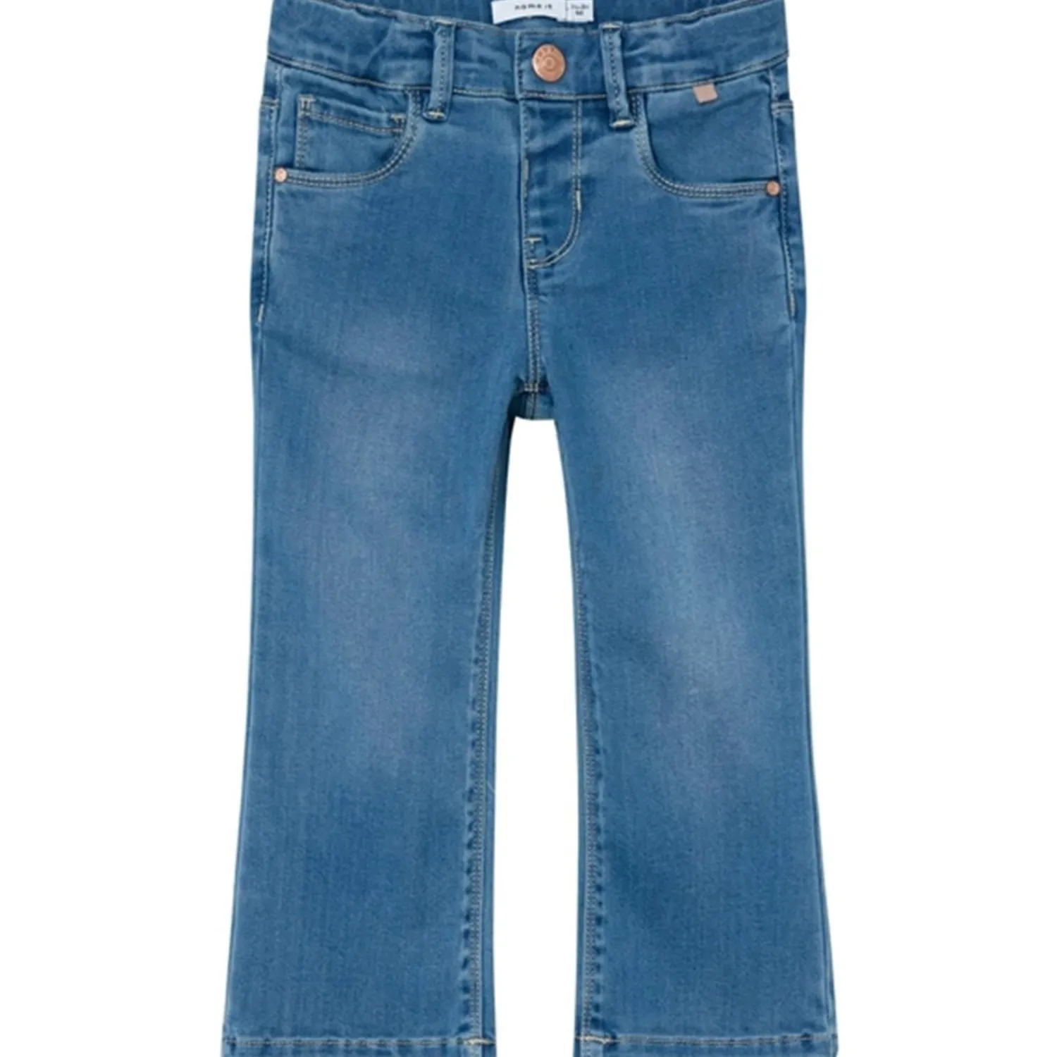 Opgrader din lille’s garderobe med disse Light Blue Denim Salli Bootcut Jeans Noos fra Name it. Perfekte til leg og hverdagsbrug, er disse jeans lavet af slidstærkt denim, der er behageligt og holdbart – ideelt til aktive børn. Med en trendy bootcut pasform og slim fit om hoften og benet, udvider de sig ved fodåbningen for at passe perfekt til støvler eller sneakers.