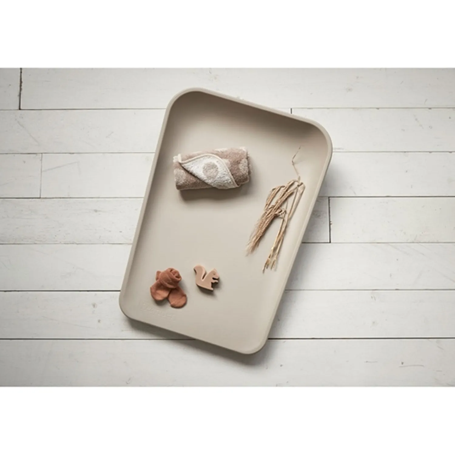 Den stilfulde Leander Matty™ passer perfekt ind i enhver indretning og kan bruges på forskellige overflader som kommoder, borde eller gulvet. Med dens ergonomiske design og høje kanter kan du trygt nyde babymassage og pusletid med dette holdbare og let at rengøre produkt.
