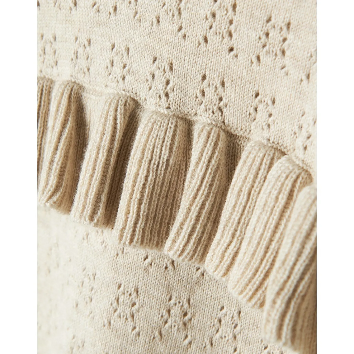 Opgrader din lille éns garderobe med Name It Peyote Melange Osilla Strik Bluse, der kombinerer stil og komfort på bedste vis. Denne strikkede bluse er lavet af blødt jacquardstof med flotte flæser og ribkanter, der tilføjer både charme og holdbarhed til designet. Den strukturerede tekstur og tidløse mønster gør den til et must-have i enhver børnegarderobe.