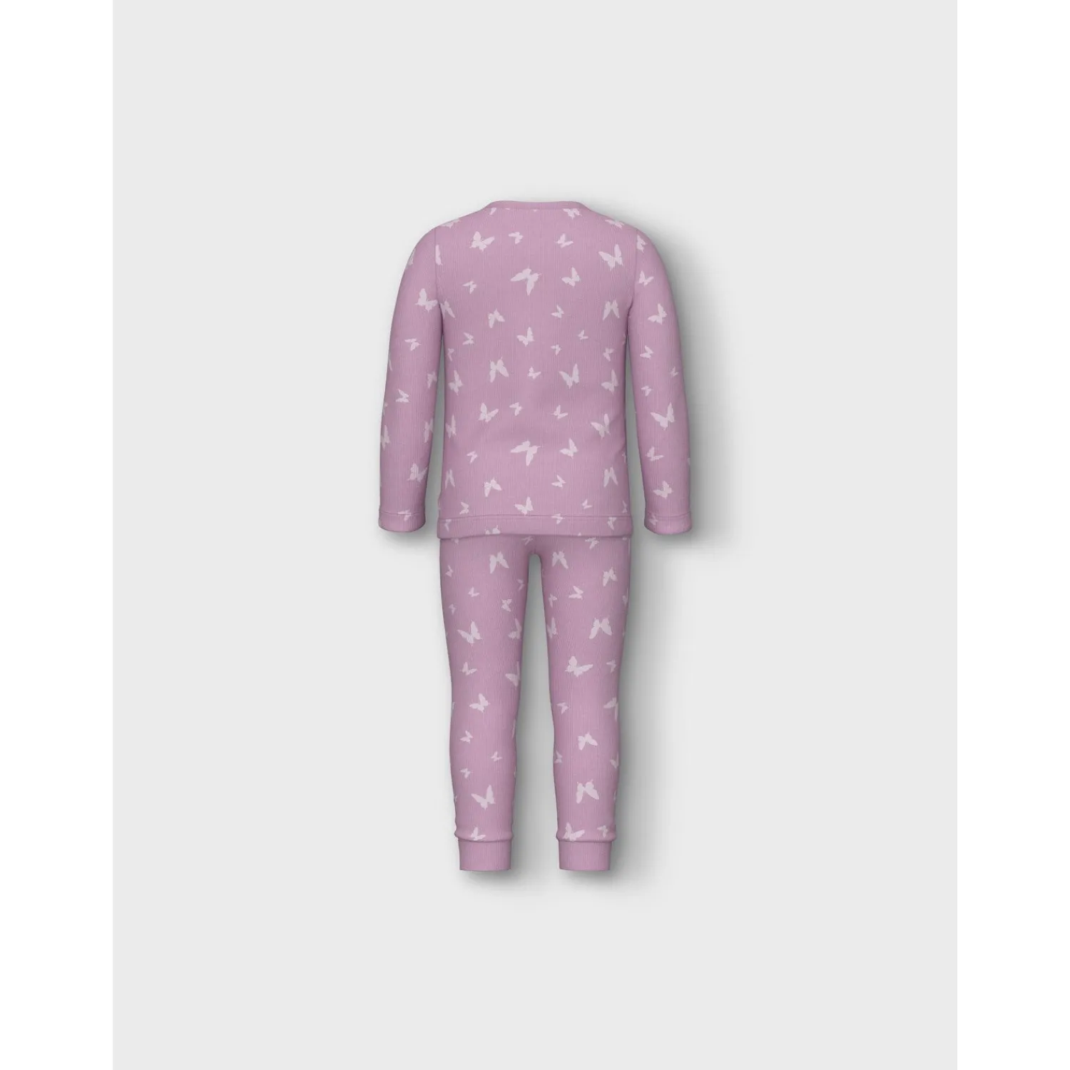 Forkæl dit barn med disse Name It Pink Lavender pyjamas og gør sengetid til en hyggelig oplevelse. Designet i blødt ribstrikket materiale med en elastisk talje og lange ærmer, sikrer dette natsæt en behagelig pasform hele natten. Det charmerende pink butterfly-mønster vil glæde enhver lille drømmer og gøre pyjamasen til det perfekte valg til afslappede hjemmedage eller en god nats søvn.