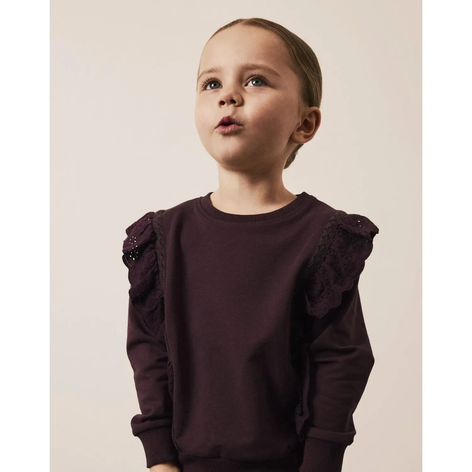 Lad din lille én skinne i denne Plum Perfect Luva sweatshirt fra Name It – det perfekte valg til både hverdag og fest!