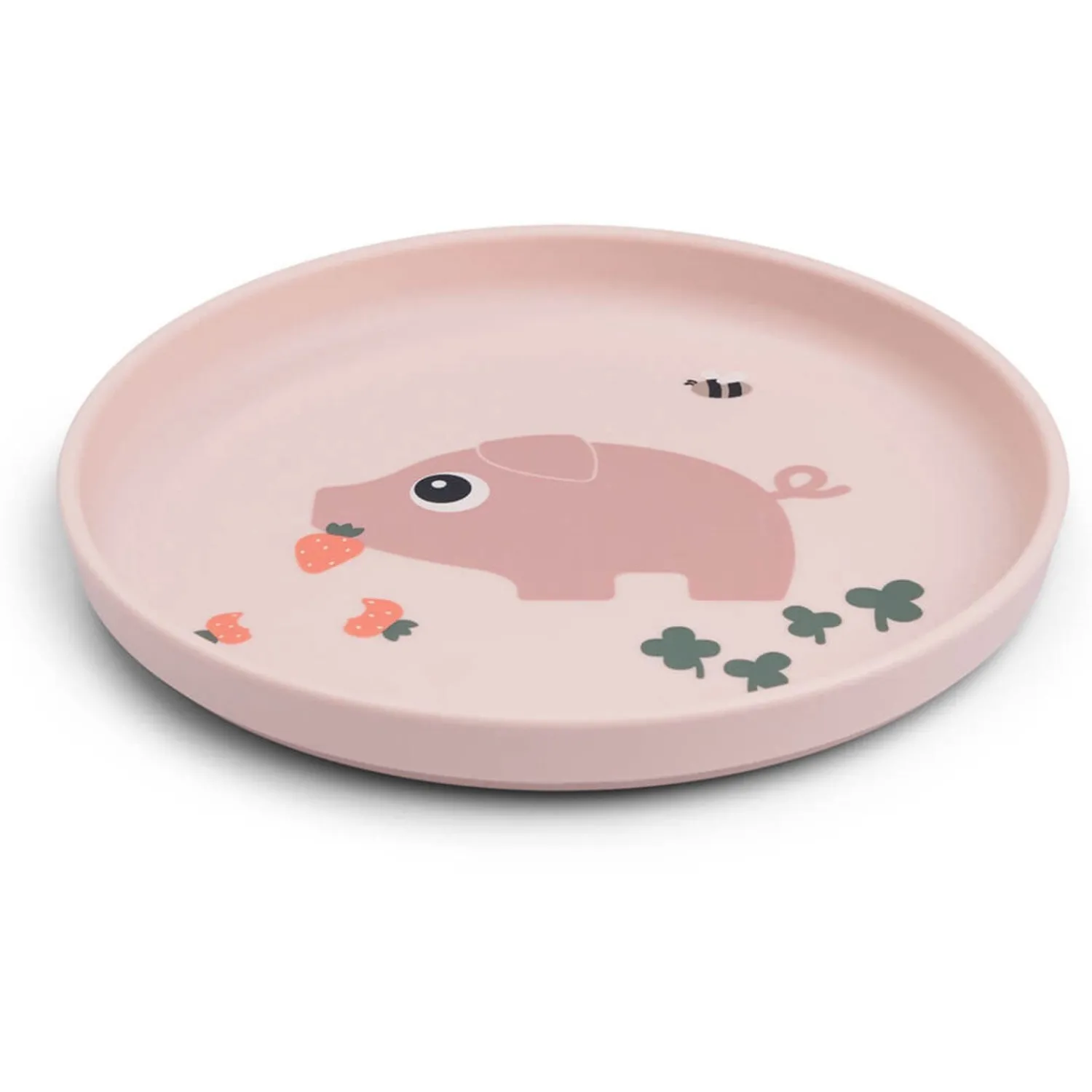 DonebyDeer Pudder Foodie Tallerken Tiny Farm gør måltiderne sjovere og mere sikre for dit barn. Med et charmerende farm-design og strikte sikkerhedsnormer og certificeringer er denne tallerken designet med dit barns velbefindende i tankerne. Den fremmer selvstændighed ved måltiderne og er nem at håndtere og rengøre.