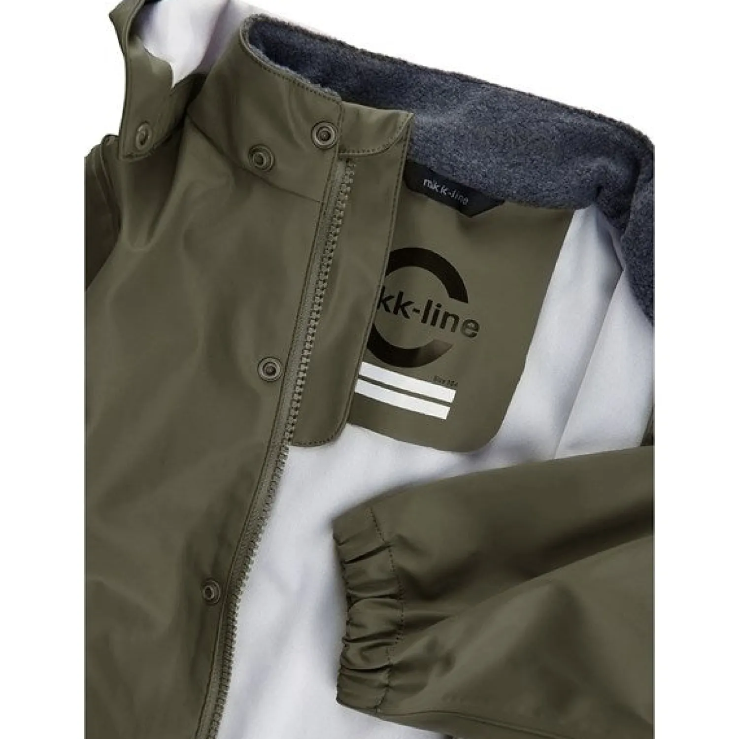 Tag dine børn med ud i regnen iført dette smarte regnsæt fra Mikk-Line i en flot dusty olive farve. Regntøjet er både vind- og vandtæt med svejsede sømme, så dine børn kan lege uden bekymringer. Jakken har lynlås, trykknapper, hagebeskyttelse og en aftagelig hætte, mens bukserne har justerbar talje og fodstropper. Reflekterende detaljer øger synligheden, og indvendigt er der plads til barnets navn. Alt regntøj fra Mikk-Line er lavet af genbrugsmateriale, og størrelserne 74-104 kommer med seler.