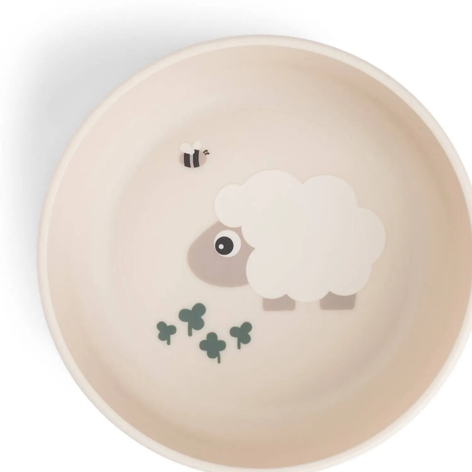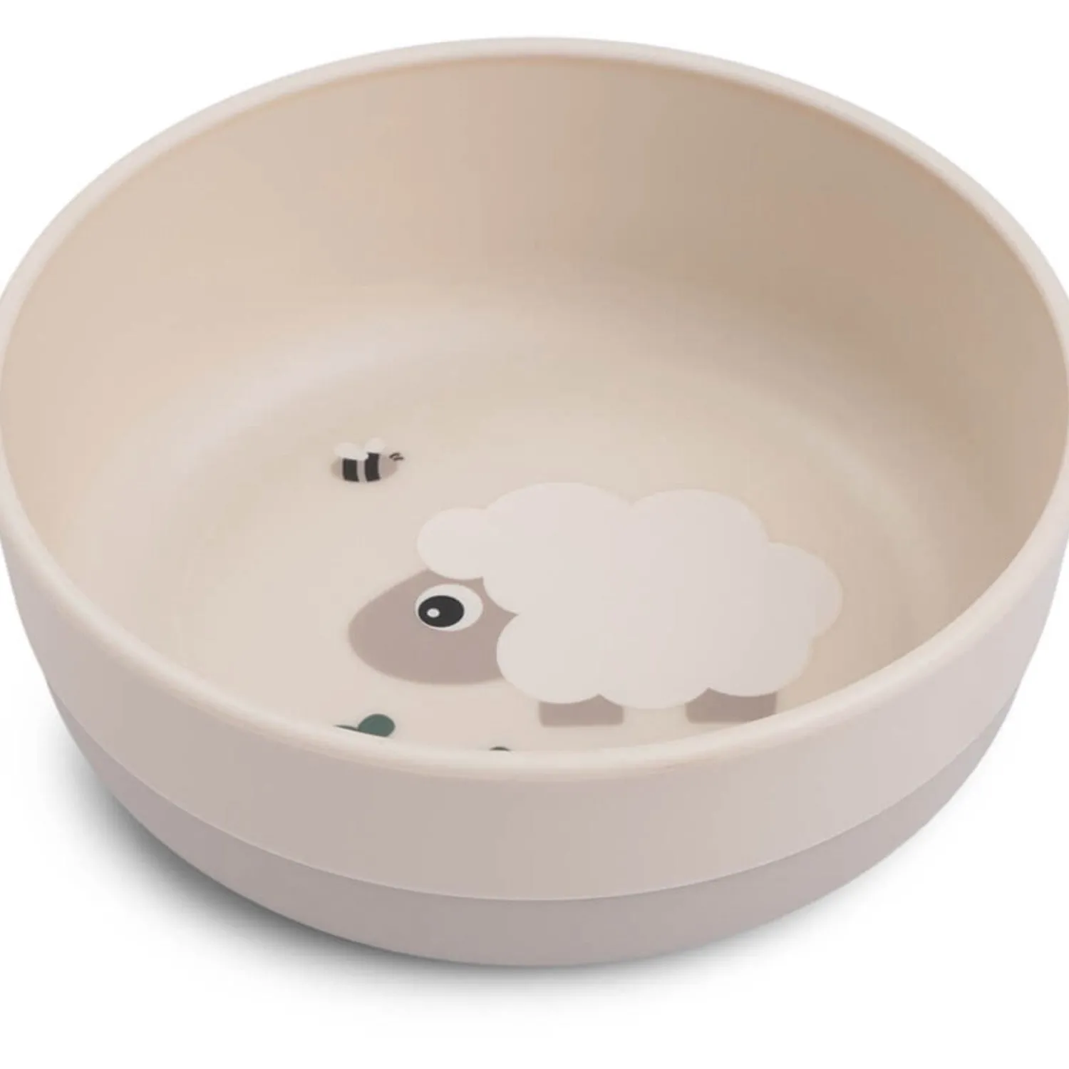 Skålen er lavet af fødevaregodkendt PP, der er frit for skadelige stoffer som BPA. Den har en praktisk antiskrid-base, en høj kant der hjælper børn med at spise, og den kan nemt rengøres i opvaskemaskinen. Med en fin sandfarve og motivet af Sheepy vil denne skål inspirere dit barn til at udforske madens verden på en sjov måde.