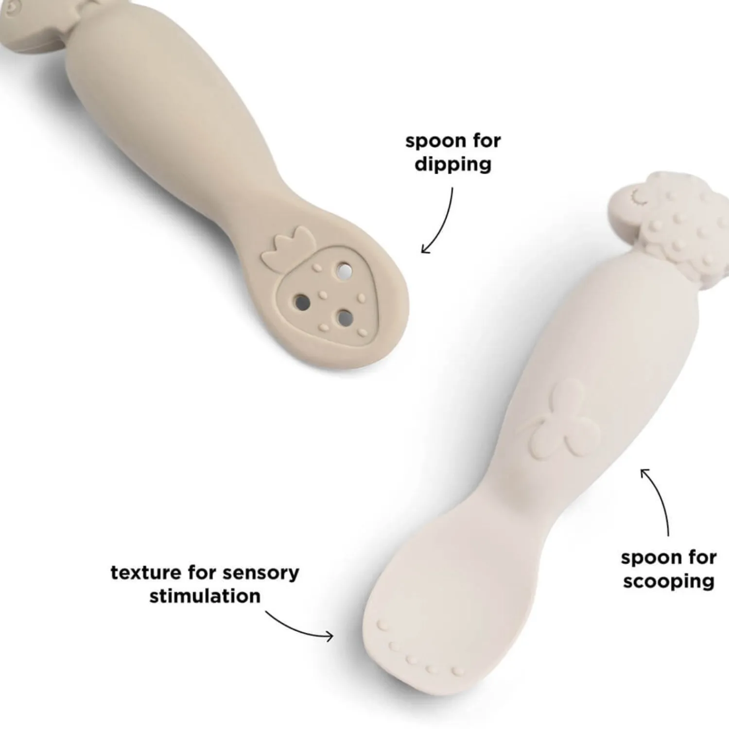 - Bløde skeer, der er perfekte til, når din baby skal udforske mad i sit eget tempo