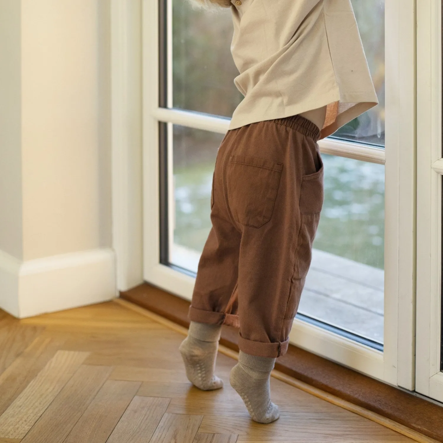 Med Gobabygo Sand Non-Slip Strømper i bambus kan dit barn trygt tage de første skridt med ekstra støtte og sikkerhed. De skridsikre strømper er udstyret med gummipuder under fødderne og på tæerne, hvilket giver optimalt greb på glatte overflader og styrker barnets balance.
