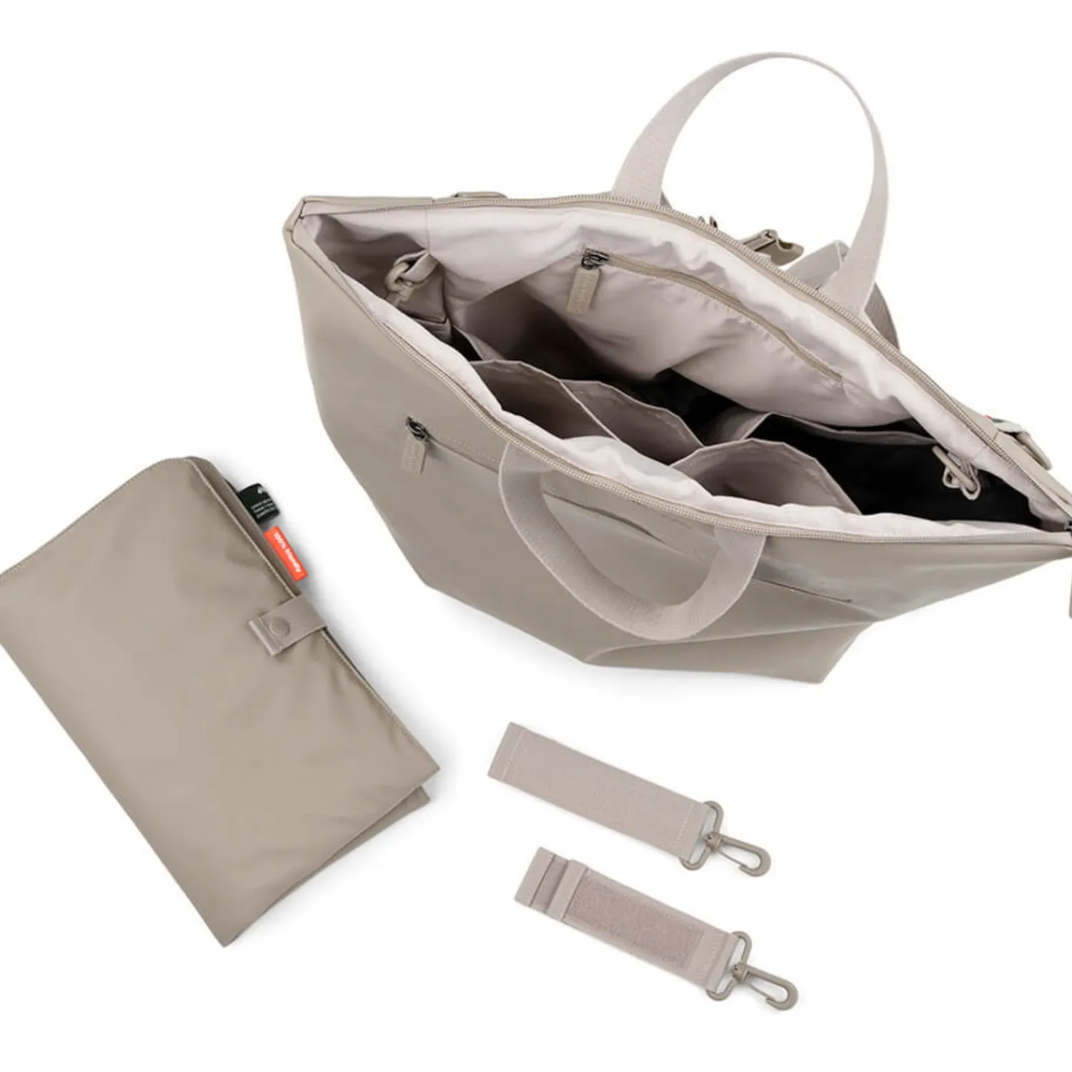 Den smarte DonebyDeer Sand Puslerygsæk er det perfekte valg for moderne forældre. Lavet af 38 genanvendte PET-flasker, fokuserer den på miljøvenlig opbevaring. Med en bred åbning, 7 indvendige lommer og en ekstern lomme, kan du nemt organisere alt fra sutteflasker til snacks.