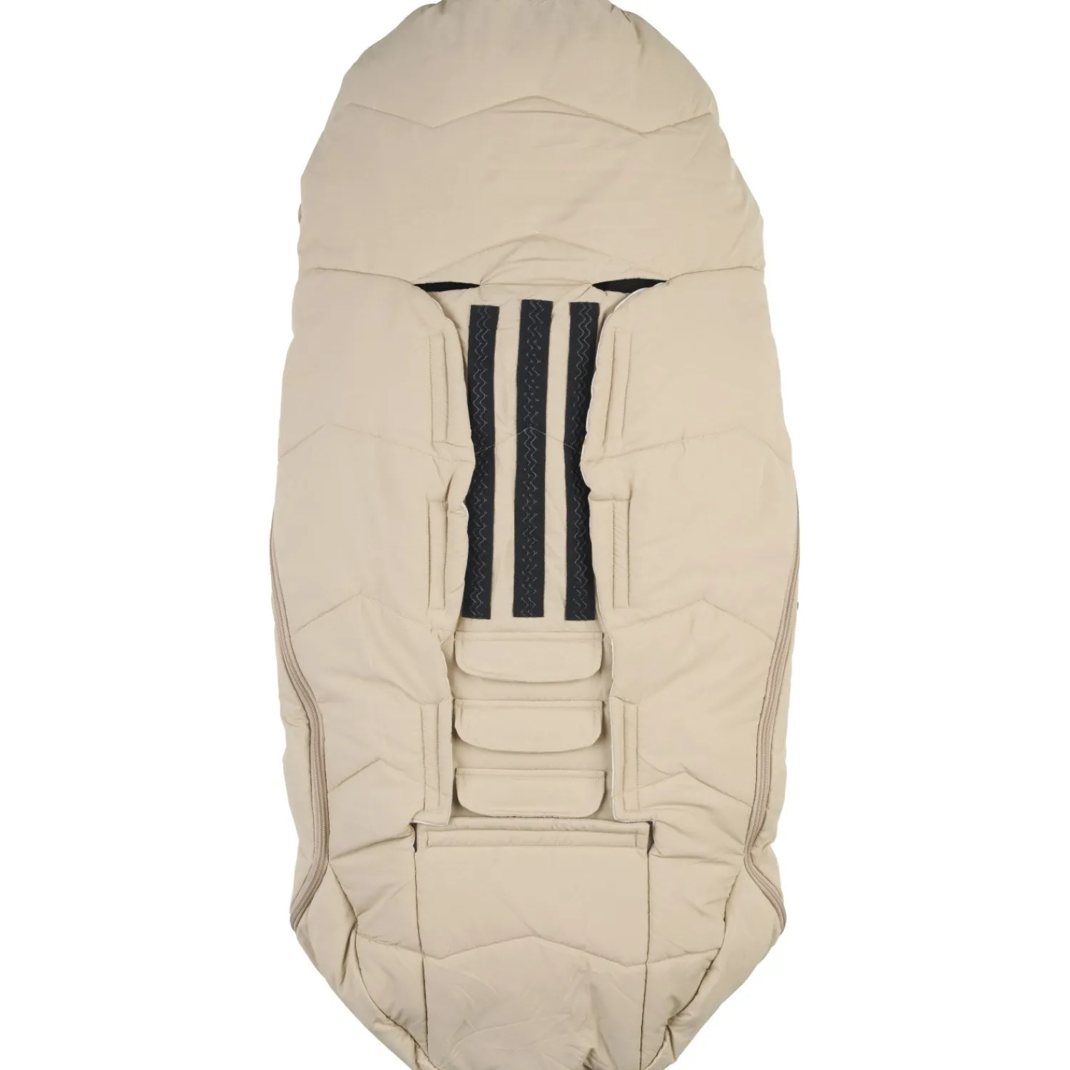 Voksi Seashell Sand Explorer er fremstillet af højkvalitetsmaterialer, herunder blødt ande- og dunfyld kombineret med åndbar uldpolstring, som sikrer behagelig temperaturregulering i enhver situation. Med en smart lynlåsåbning ved fødderne og en emergenslynlås, er denne kørepose både praktisk og sikker i brug.