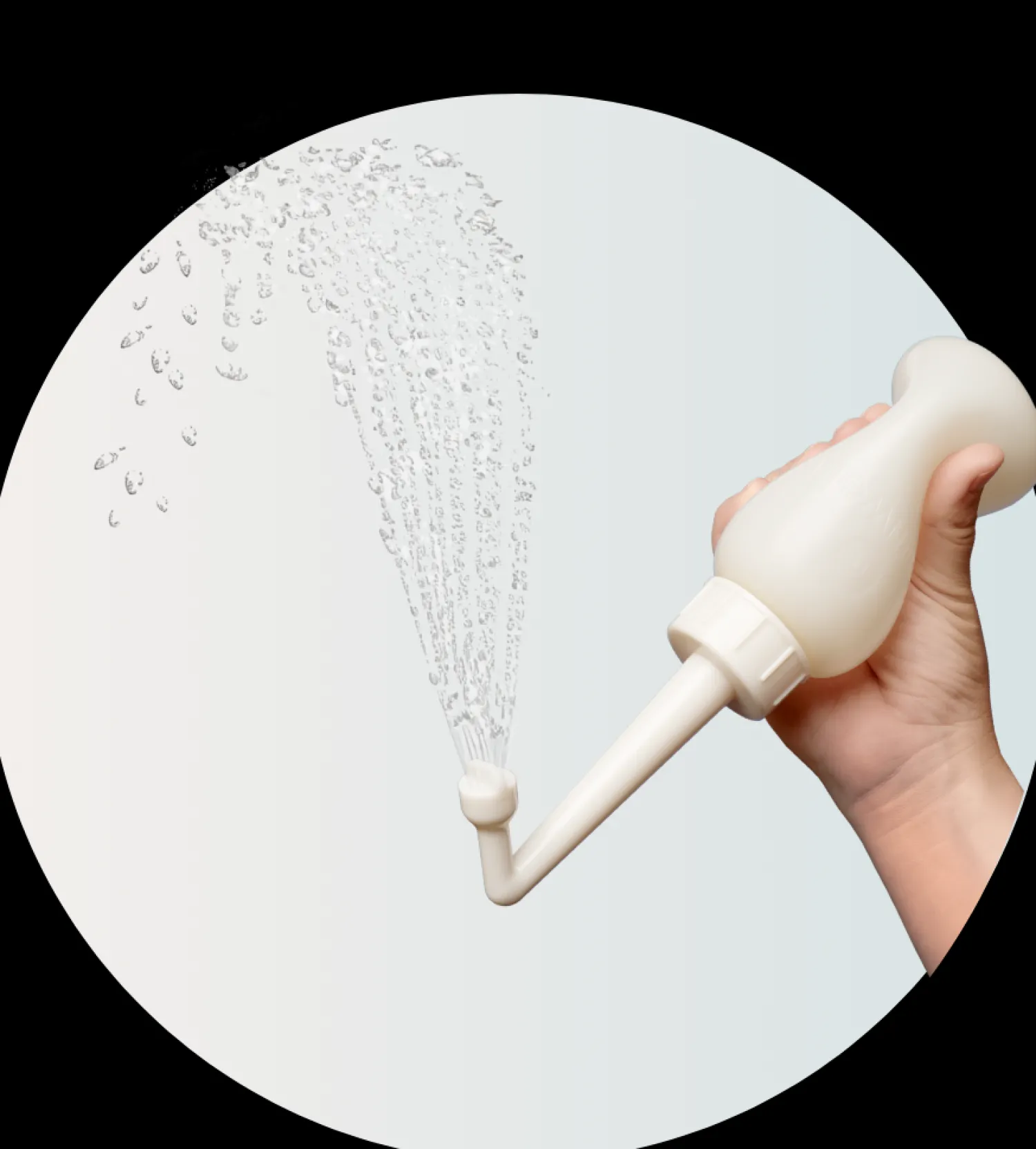 Uanset om du er på hospitalet eller derhjemme, er vores skylleflaske uundværlig efter fødslen. Den er perfekt til de første ture på toilettet, hvor den hjælper dig med at vaske skånsomt og undgå irritation. Fyld blot flasken med lunken vand, luk låget sikkert, og pres forsigtigt, mens du sidder på toilettet, for at frigive en beroligende og blid vandstråle. Vask så længe du har brug for det, og tør dig derefter forsigtigt med et stykke papir.