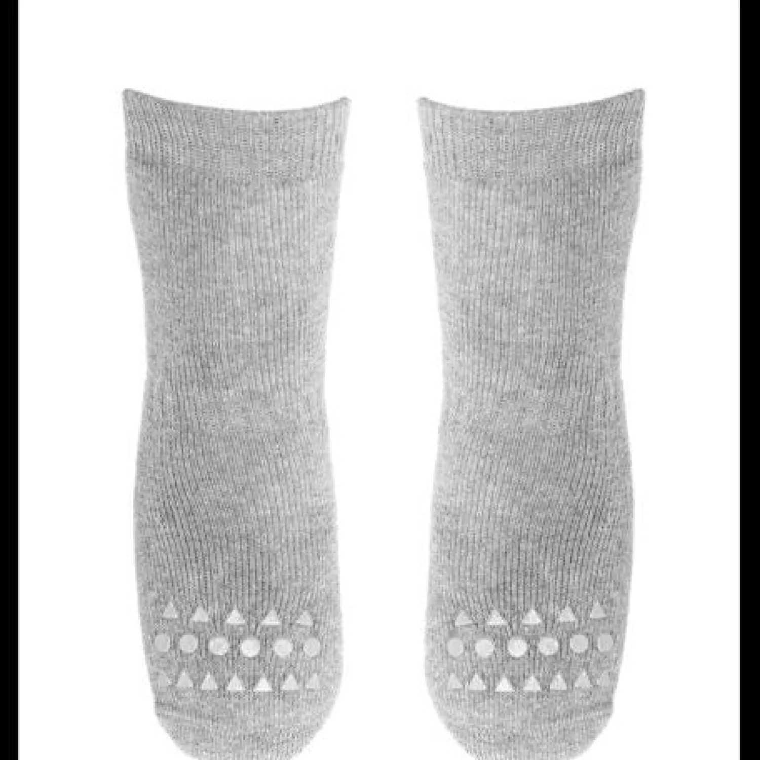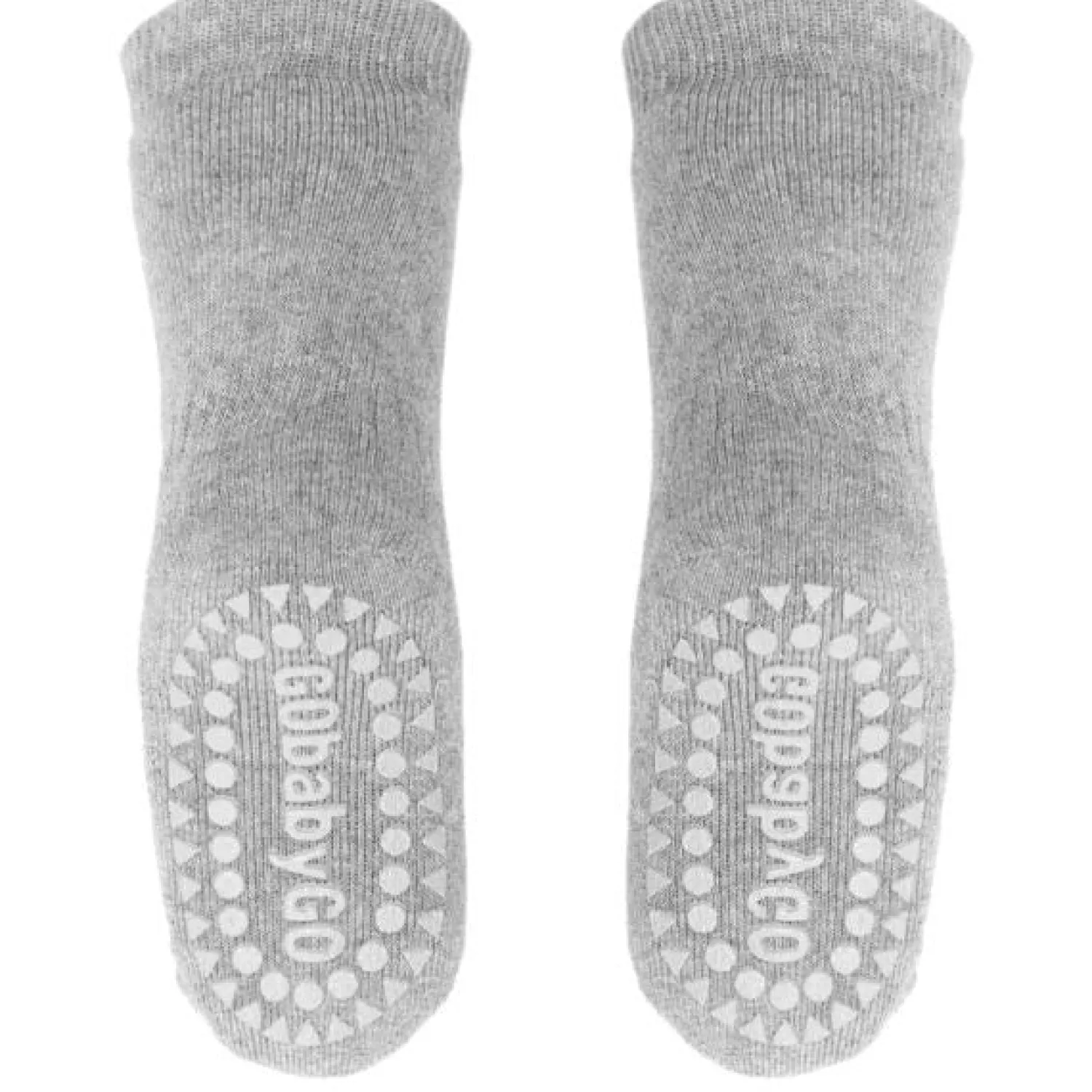 Forkæl dit barns fødder med GObabyGO skridsikre strømper i Grey Melange. Lavet af en blød og åndbar blanding af 80% bomuld, 17% polyamid og 3% elastan, sikrer disse behagelige strømper en god pasform og komfort. De unikt designet med skridsikre silikonegummipuder under fødderne og på tæerne, hjælper dit barn med at bevæge sig sikkert og uden at glide, når det lærer at kravle og gå.
