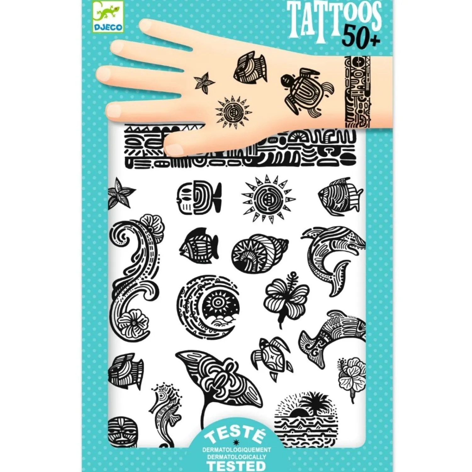 Opdag Djeco Tattoos Polynesien – et sjovt og kreativt tilbehør, der vil glæde alle børn! Med et stort udvalg af smukke og farverige tatoveringer, som spænder fra pirater til søde dyr, vil dit barn uden tvivl blive den sejeste i byen. Disse tatoveringer er ikke kun sjove at bruge til udklædningsfester og lege, de er også dermatologisk testet og sikre for børn at bruge. Så forældre kan slappe af og lade børnene nyde legen med disse skønne tatoveringer.