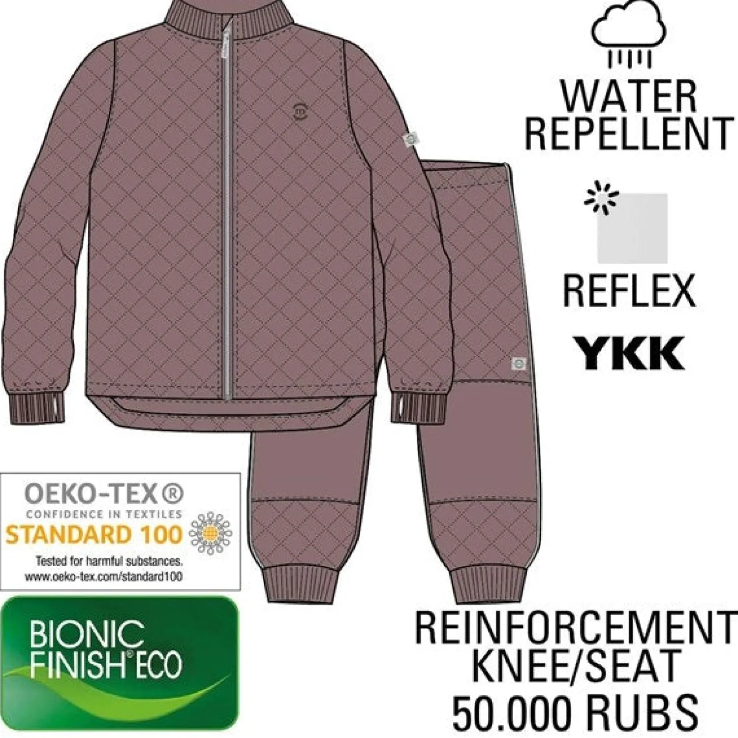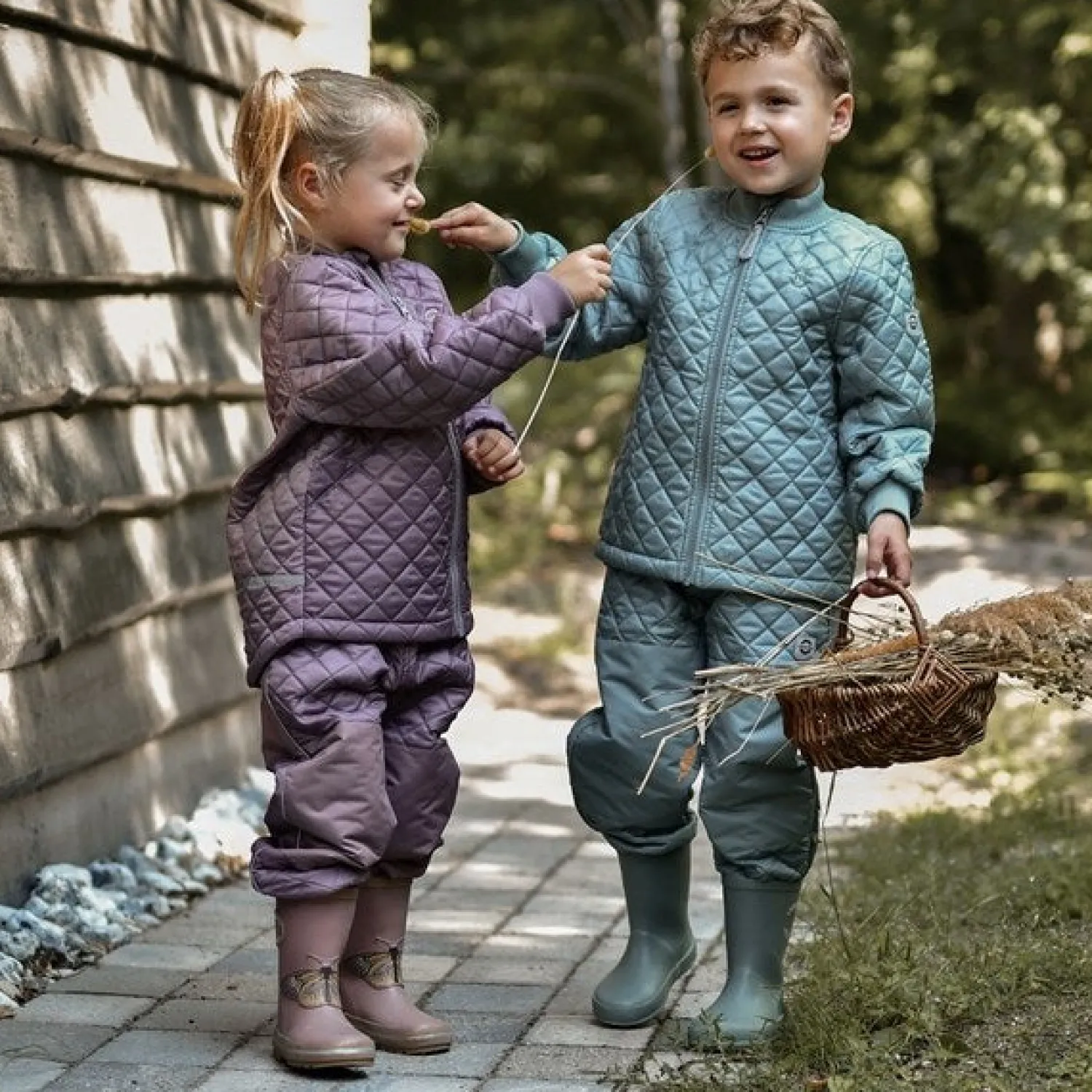Dyk ned i et kvalitets termosæt fra Mikk-Line i en smuk twilight mauve farve. Perfekt til aktive børn, bukserne har forstærkning på knæ og numse, reflekser på ben og ryg samt tommelfingerhuller i ærmerne. Vandafvisende egenskaber gør det ideelt til overgangsperioden.