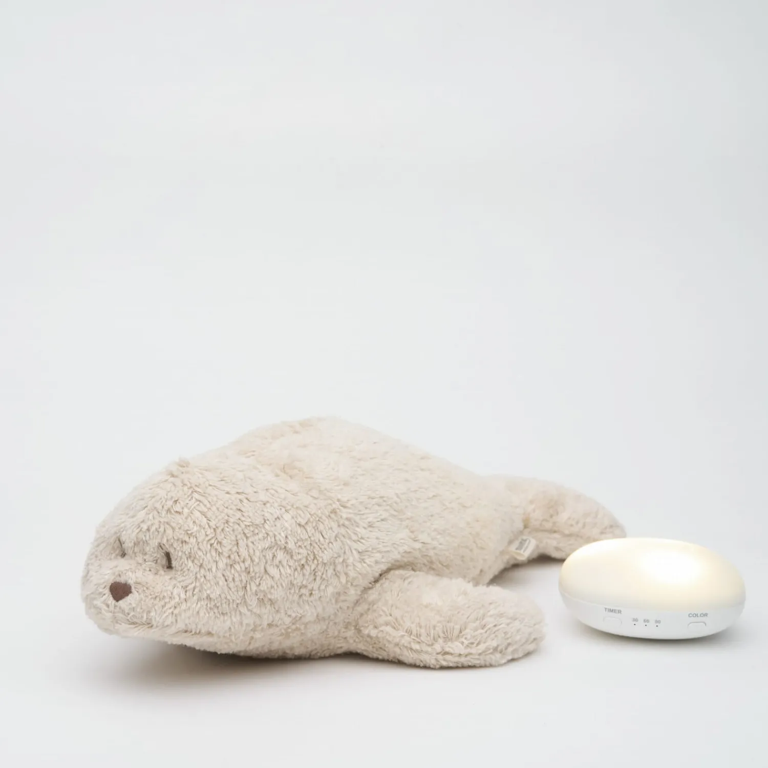 Moonie sælen er fremstillet i økologisk bomuld og udstyret med genopladelig lyd- og lysmodul. Den er nem at bruge, sikker for selv nyfødte og en smuk del af både soveværelset og hverdagen.