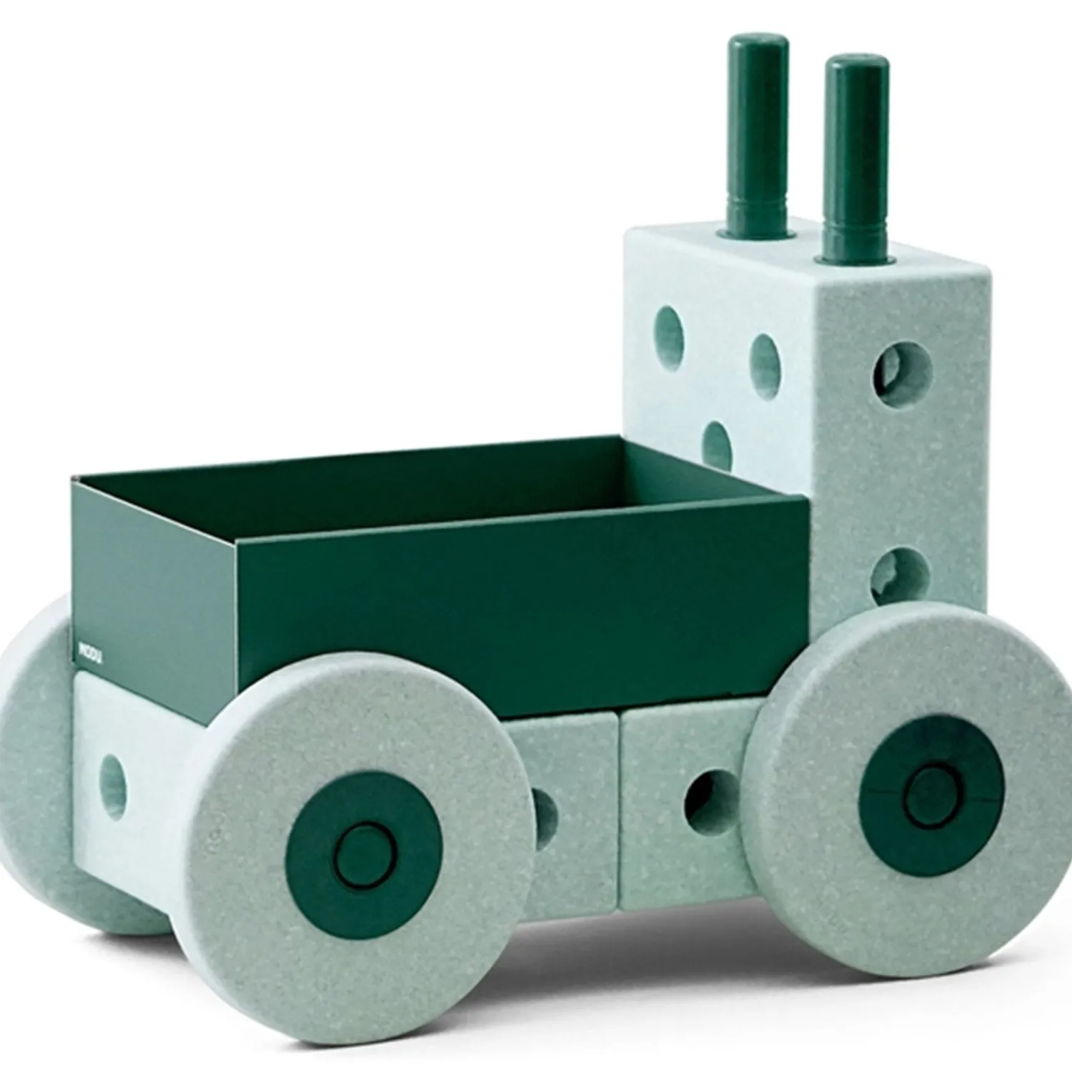 Produktet indeholder en rummelig kartonæske til transport af legetøj, og er lavet af 100% genanvendeligt EPP-skum og ABS, samt en FSC-certificeret papæske. Med 22 dele, herunder 3 klodser, 14 samlepinde, 4 skumhjul og 1 æske, er gåvognen velegnet til børn i alderen 0,5-3 år. Mål: L:48 x B:27 x H:44 cm. Let at rengøre med en fugtig klud.