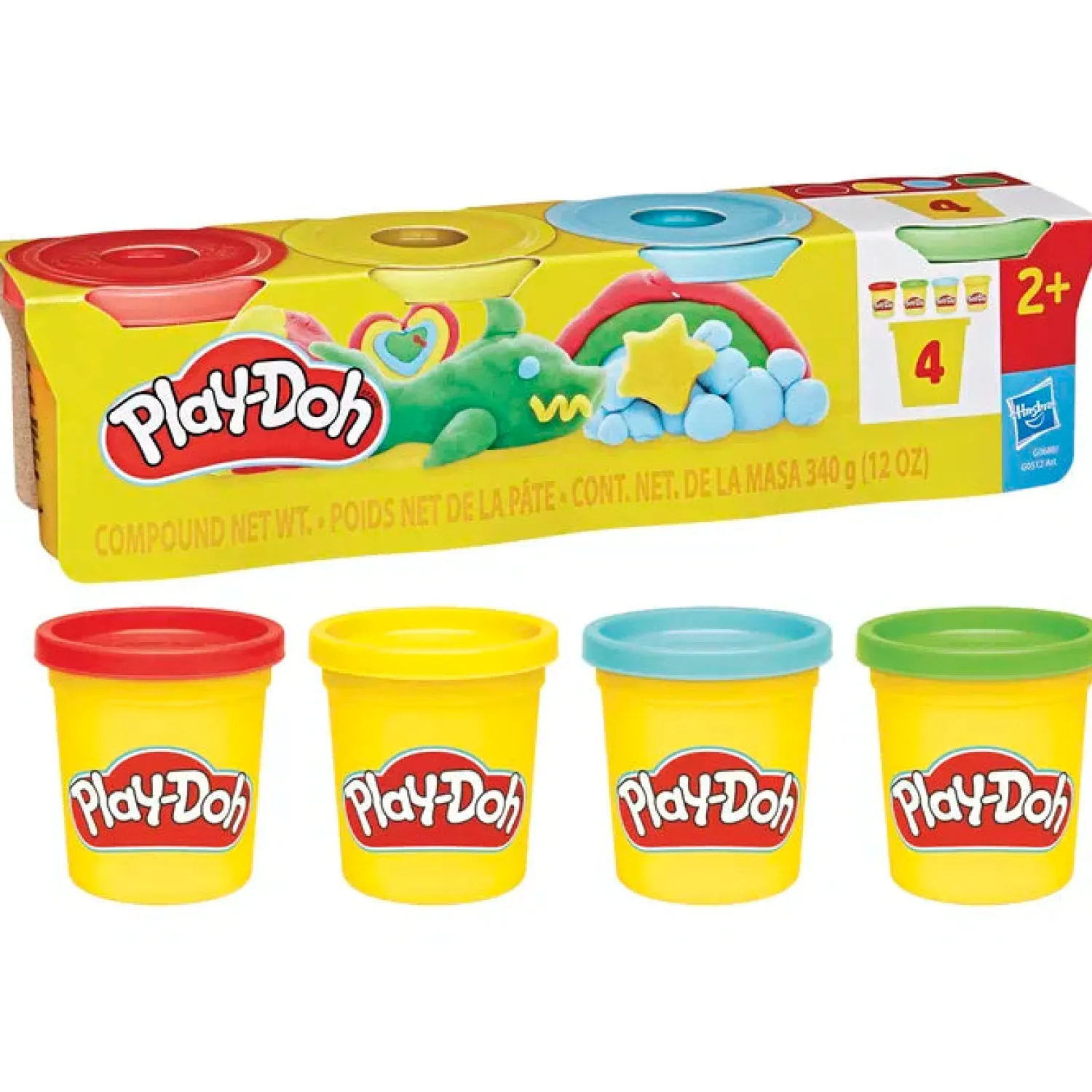 Slip kreativiteten løs med Play-Doh Klassisk 4-pak! Et fantastisk sæt til børn fra 2 år og op, der elsker farverig og sanselig leg. Indeholder 4 farver i 85 g-bøtter – perfekt som refill, gave eller til brug med andre Play-Doh legesæt (sælges separat).