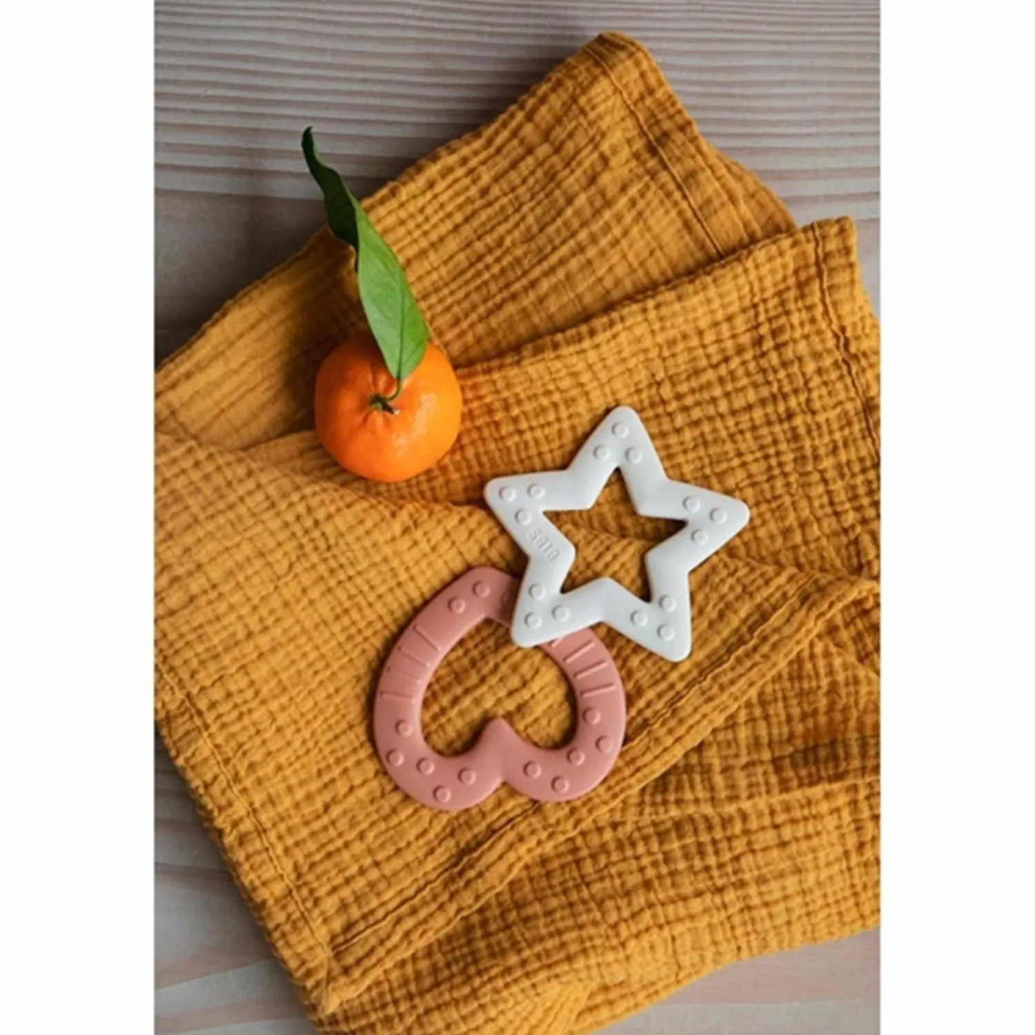 Opdag Bibs Baby Bitie Stjerne Ivory – den perfekte bidering til din lille guldklump. Denne smukke og bløde bidering formet som en stjerne i en elegant off-white farve er designet til at lindre ømme gummer og give trøst til dit barn.