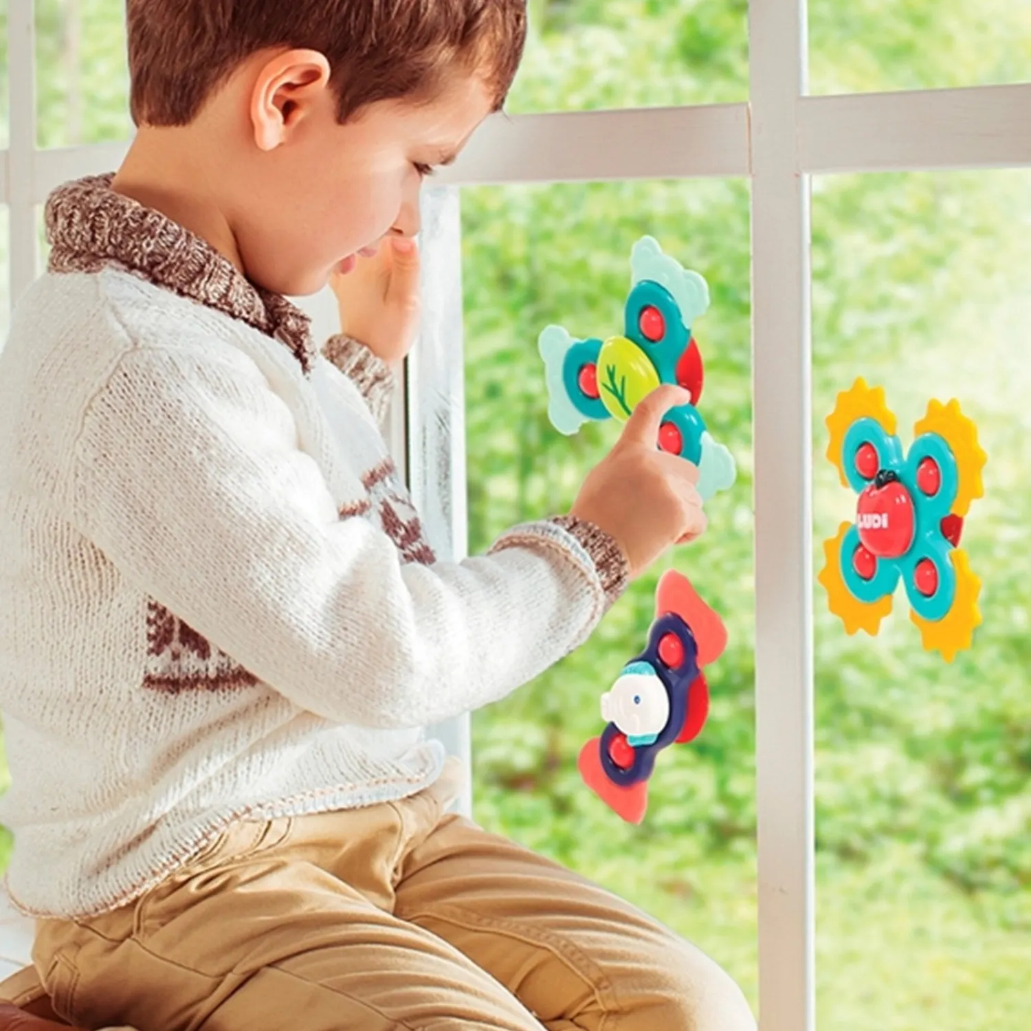 Spinnerne kan bruges overalt – i badet, på højstolen, på vinduet eller et helt fjerde sted. De er lette at fastgøre med sugekopper og nemme at tage af igen. De bløde og fleksible blade på spinnerne sikrer, at dit barn kan lege sikkert uden risiko for skader.
