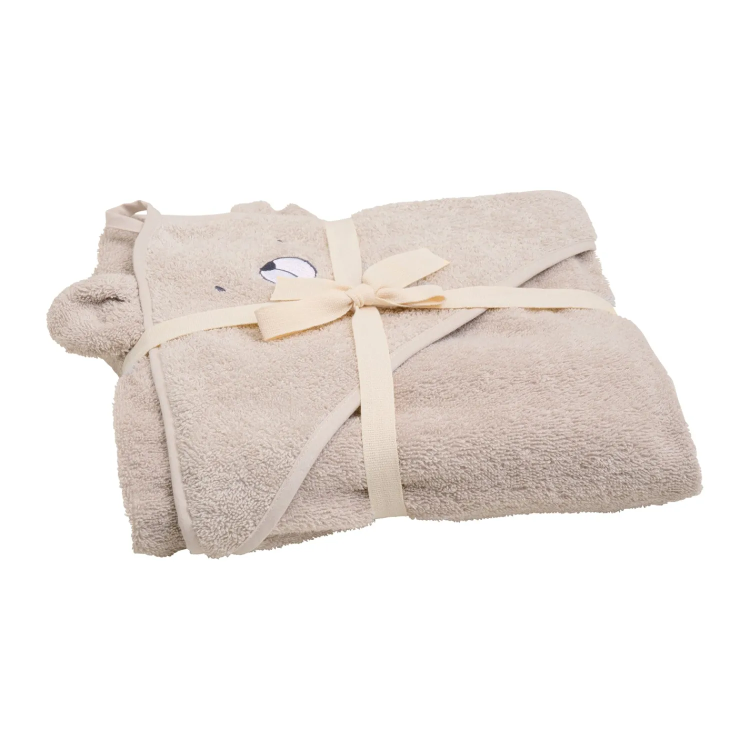 Håndklæde med hætte i blød frotté. Perfekt til at tørre og holde barnet varmt efter badet. Certificeret i hht. OEKO-TEX® STANDARD 100 Cert. No. 2276-364 DTI