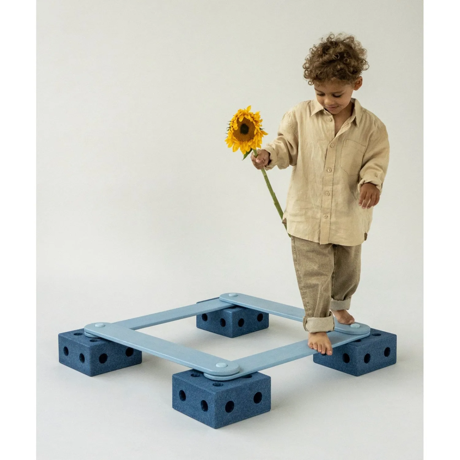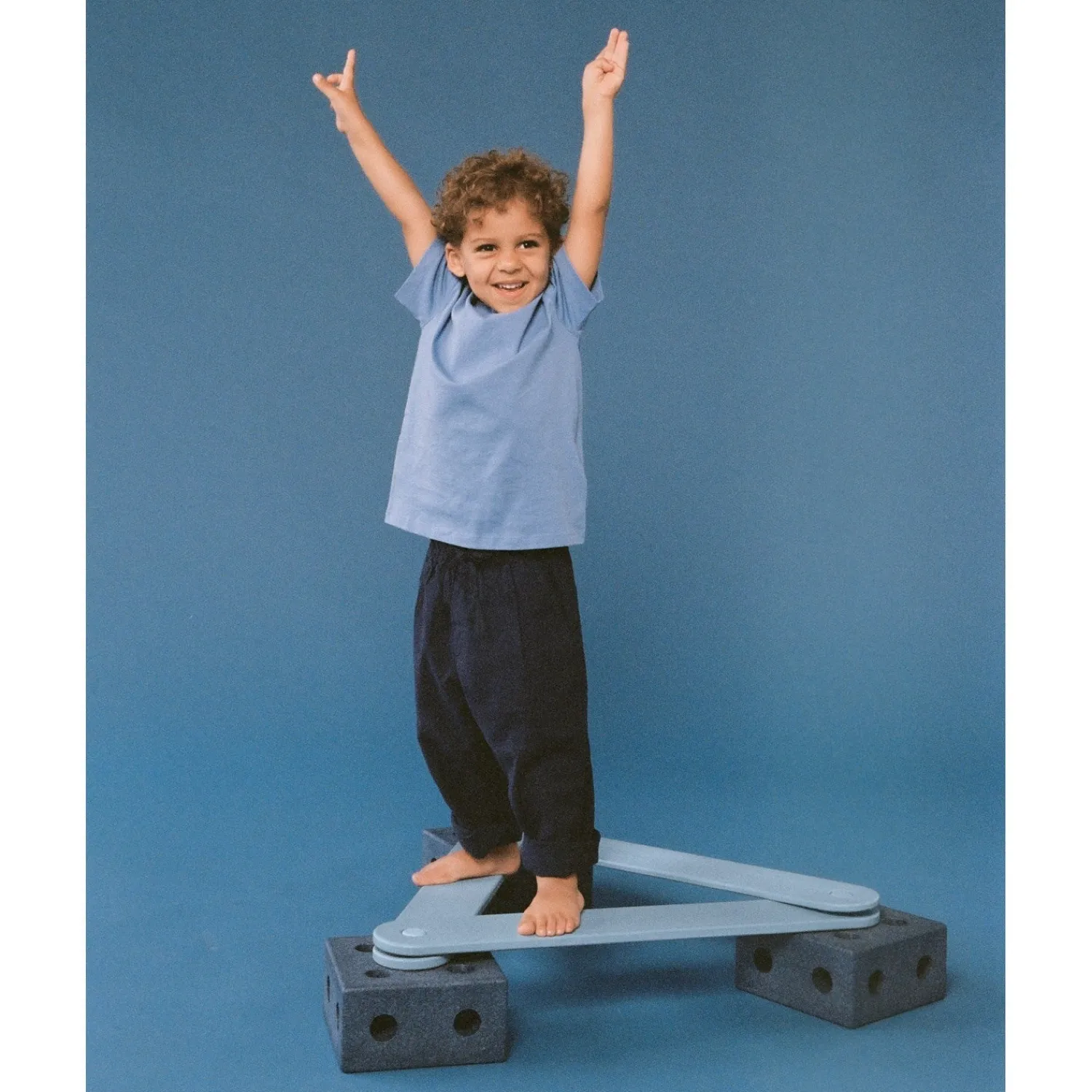 Lad dit barn udfolde kreativiteten og styrke motorikken med MODU Balancebane Deep Blue / Sky Blue. Dette sæt består af bomme og klodser, der giver mulighed for at skabe over 10 forskellige balancebaner, hvilket stimulerer fantasien og koordinationen.