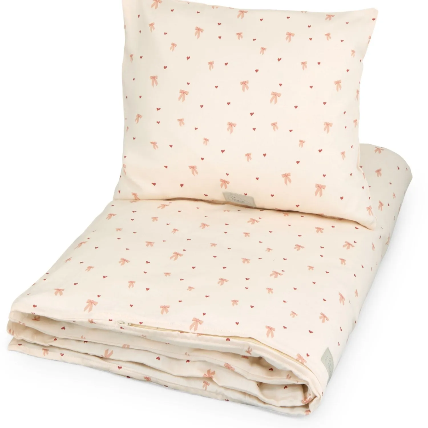 Opgrader din lille engelsk roses soveværelse med Cam Cam Copenhagen Bows sengetøj. Fremstillet af blødt økologisk bomuld i en luksuriøs satinvævning, kombinerer dette sengetøj komfort med holdbarhed. GOTS-certificeringen sikrer, at det er både behageligt og bæredygtigt, hvilket gør det til det perfekte valg for miljøbevidste forældre.