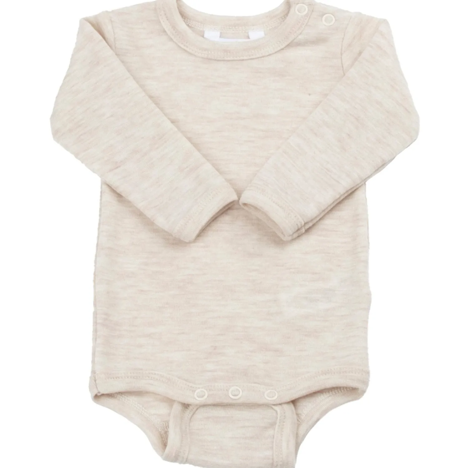 - Design: Lange ærmer, trykknapper på skulder og mellem benene