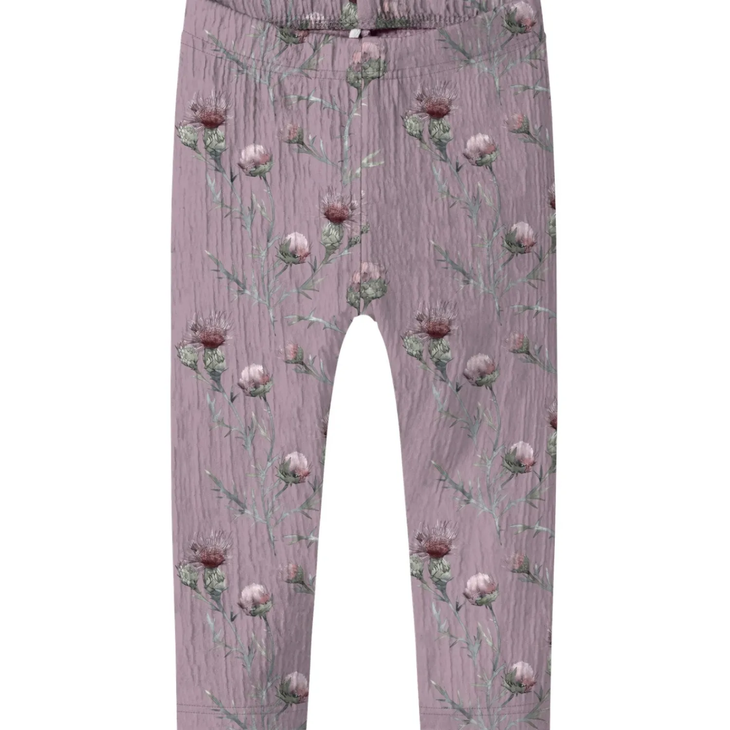 Tag på eventyr med disse leggings, der er fremstillet af 94% økologisk bomuld, 4% genanvendt polyester og 2% elastan. Vaskeanvisningen anbefaler en maksimal vasketemperatur på 40°C for at sikre langvarig glæde af produktet. Husk at holde leggings væk fra ild for sikkerheden.