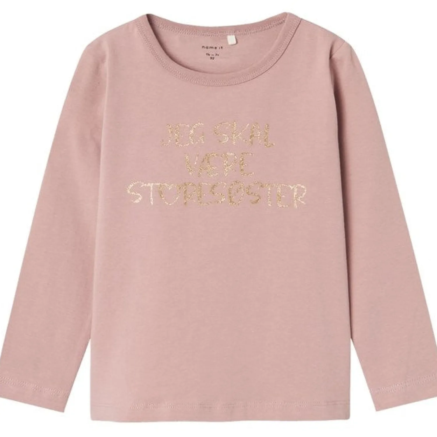 Drømmer din lille pige om at blive en stolt storesøster? Så er Name it Deauville Mauve Søster Blusen det perfekte valg til hende. Lavet af 95% økologisk bomuld og 5% elastan, kombinerer denne bluse stil og komfort på en elegant måde.