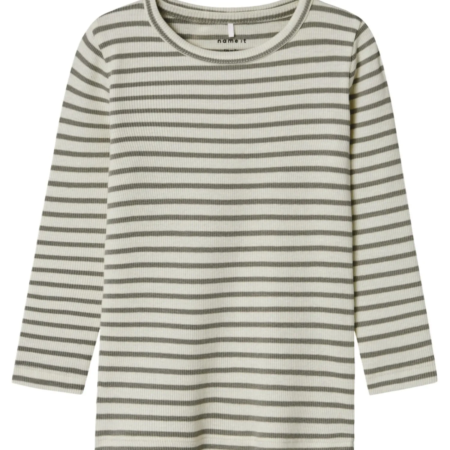 Forkæl din lille én med Name It Dusty Olive Nmnbani Ls Xsl Top Noos, en stilfuld top med klassisk ribstrikket design. Denne bluse egner sig perfekt med sit lodrette stribede mønster og fremragende elasticitet, der tilbyder en komfortabel pasform og et tidløst udseende.