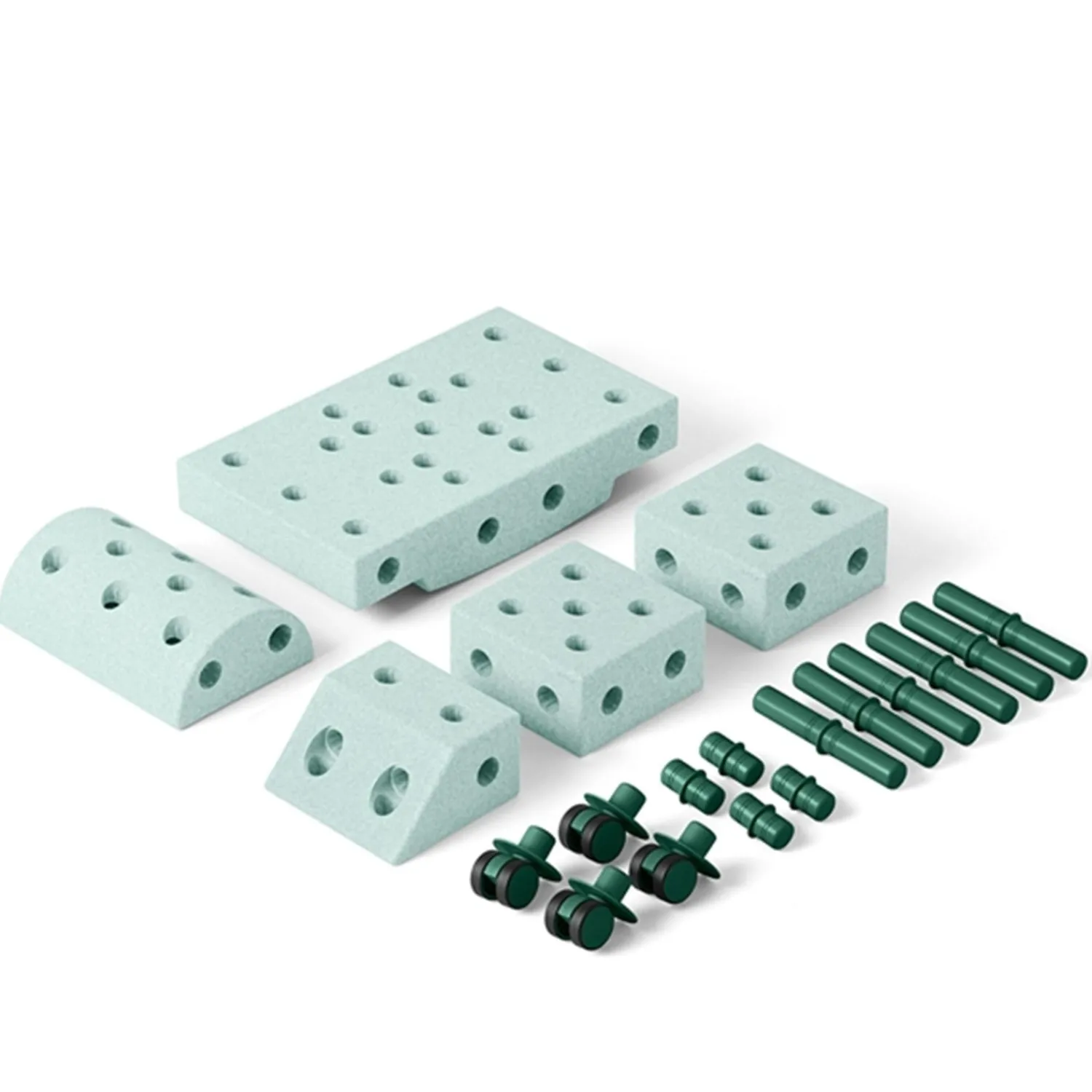 Tag med på et spændende eventyr med MODU Explorer sættet i farverne Ocean Mint og Forest Green! Dette legesæt er designet til legesyge småbørn og er perfekt til at stimulere deres motoriske færdigheder. Med hele 20 dele kan sættet samles til mindst 15 forskellige kreationer, såsom gåbiler, gyngedyr og balancelegetøj. Legen er sjov og udfordrende, og det er en fantastisk måde at engagere hele familien på, samtidig med at det fremmer kreativiteten hos børnene. Lavet af bæredygtige materialer, er dette legesæt let at rengøre og vil give mange års leg og sjov.