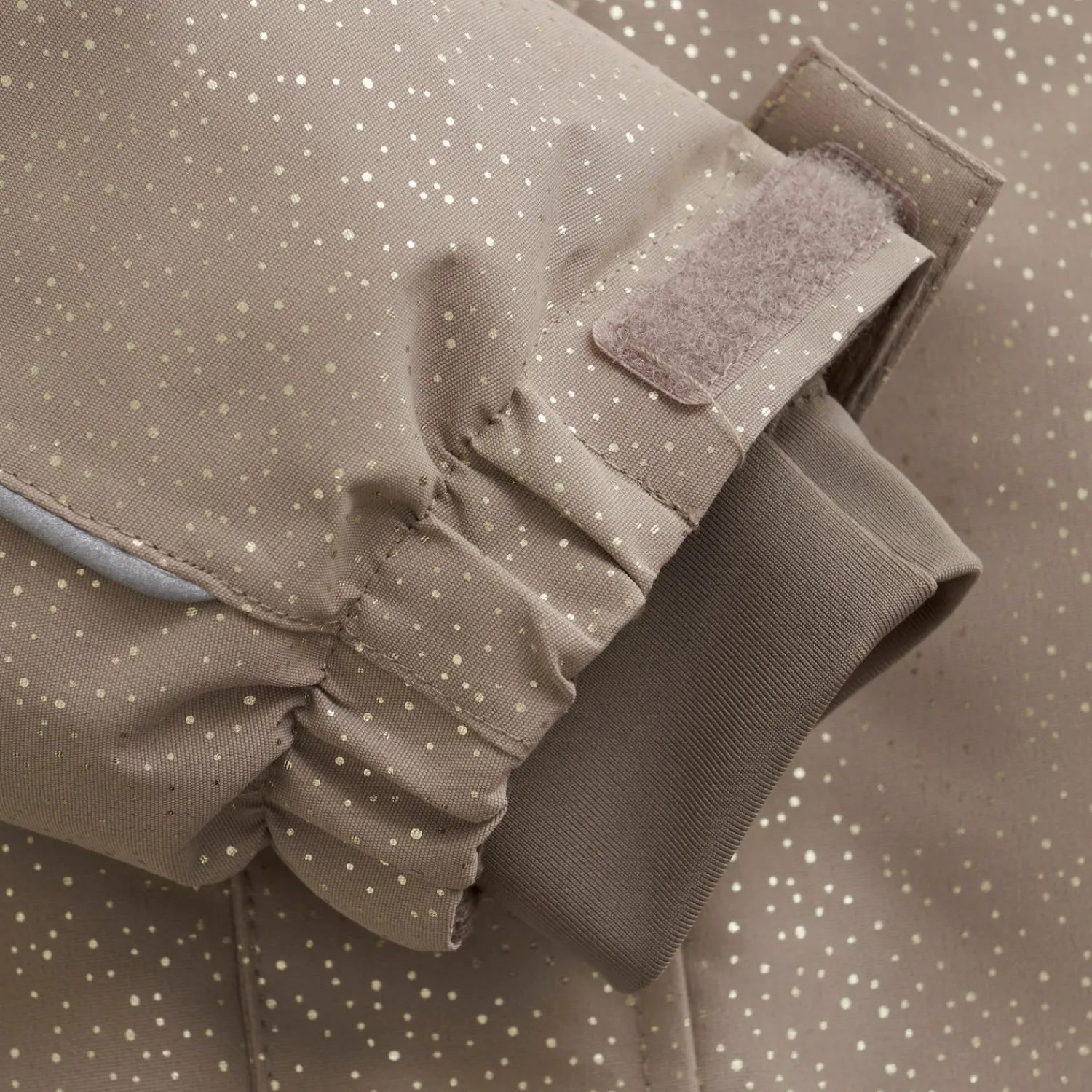 Ærmerne har pratiske snefang med brede ribkanter med hul til tommelfingeren. Ærmekanterne kan strammes ind med velcro.