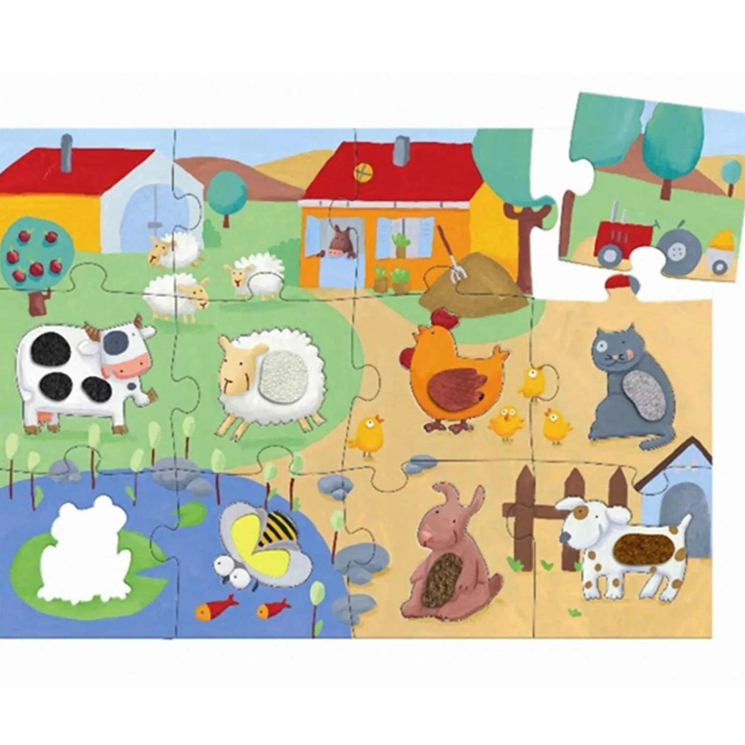 Opdag sjov og læring med Djeco Følepuslespil Bondegård, designet til børn fra 2 år og op. Dette charmerende puslespil kombinerer leg og finmotoriktræning, samtidig med at det stimulerer sanserne med forskellige teksturer på dyrene. Let at håndtere og opbevare, sikrer dette puslespil mange timers underholdning og uddannelsesmæssig værdi i en sikker ramme, ideelt til småbørn.