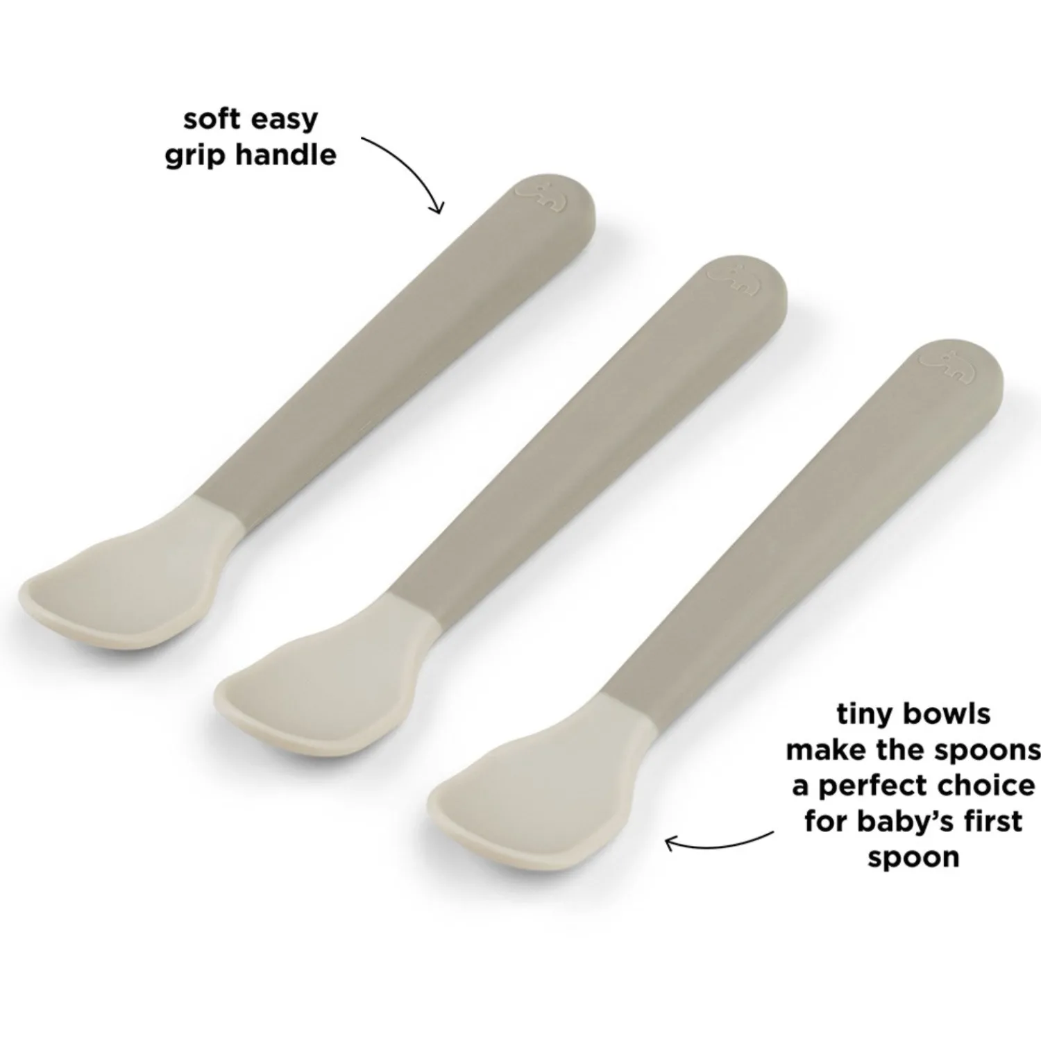 Med den bløde easy-grip-belægning på skaftet sikres et stabilt greb for din baby. Skeerne er fremstillet uden skadelige kemikalier såsom BPA og ftalater, hvilket giver dig fuld ro i sindet ved brug. De er skabt til at passe perfekt i små mundes størrelse og kan nemt rengøres i opvaskemaskinen.