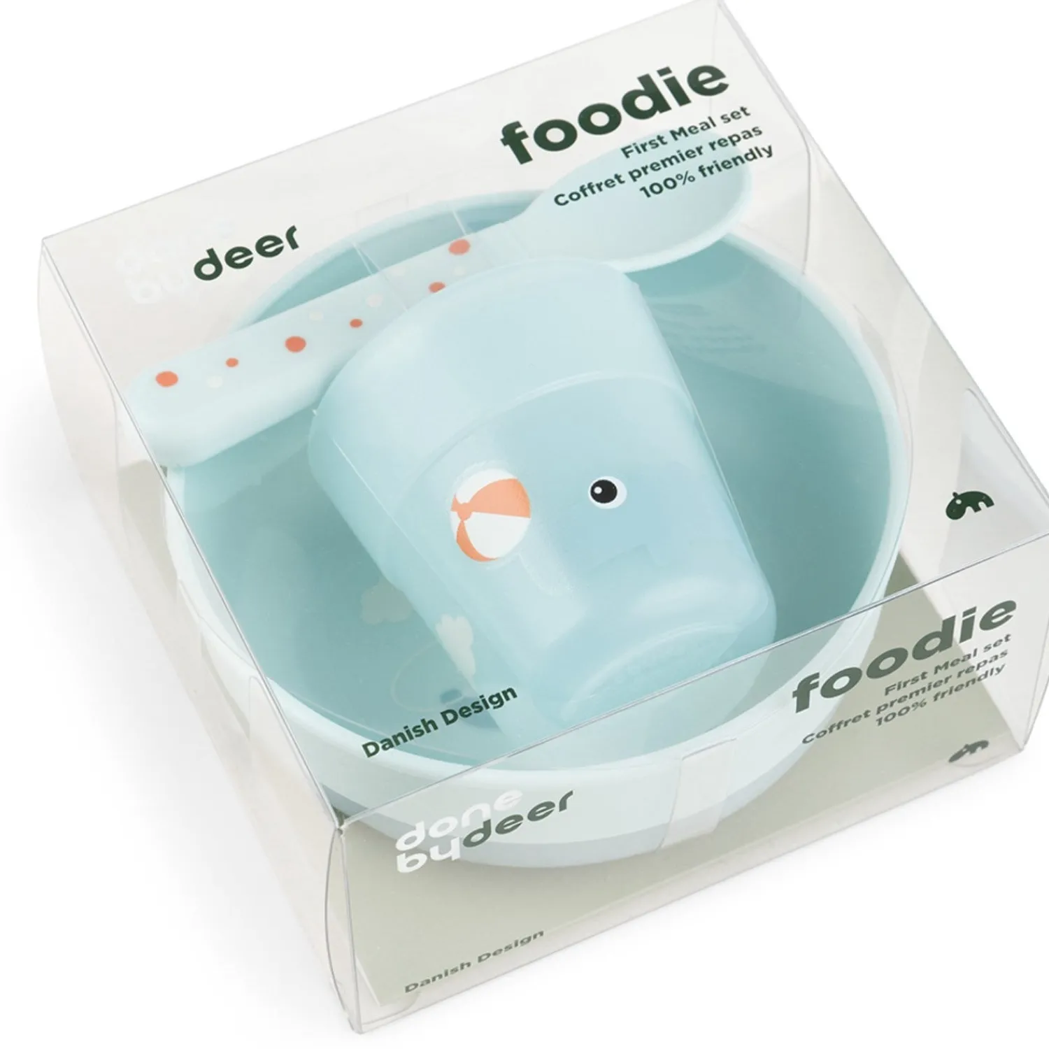 Opdag en ny måde at gøre måltider sjovere med DonebyDeer Foodie Første Spisesæt i Playground Blå! Dette charmerende sæt består af en skål, en mini kop og en madeske, alle dekoreret med et legende design af Elphee og Croco, der hygger sig på legepladsen.