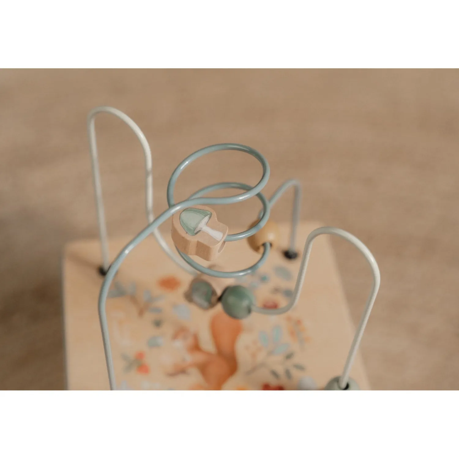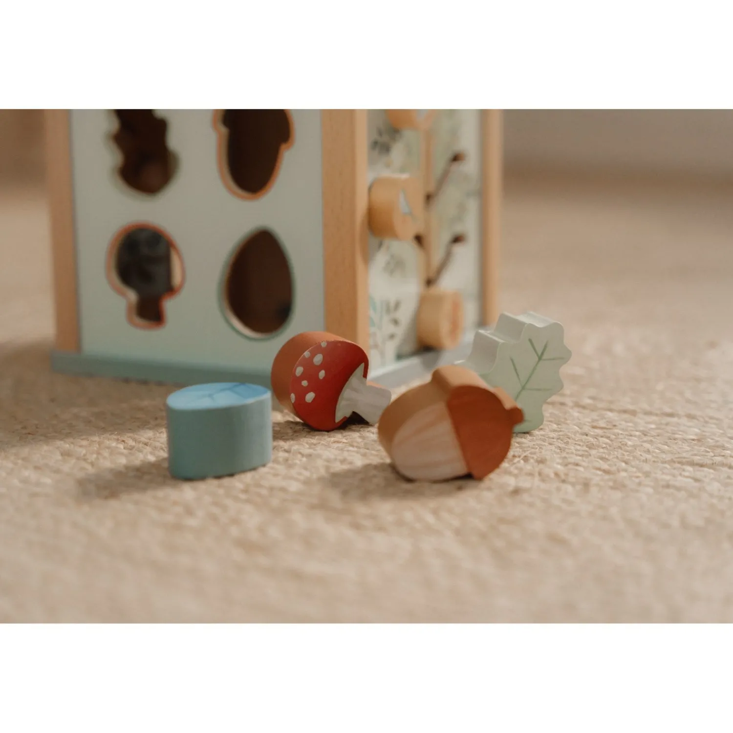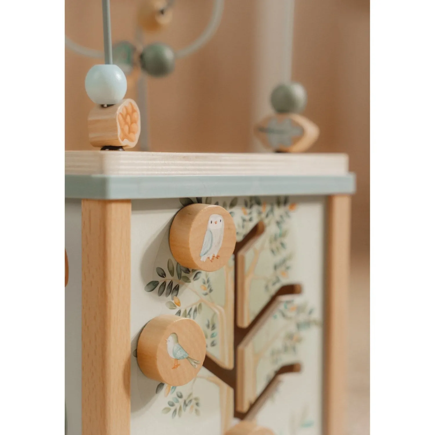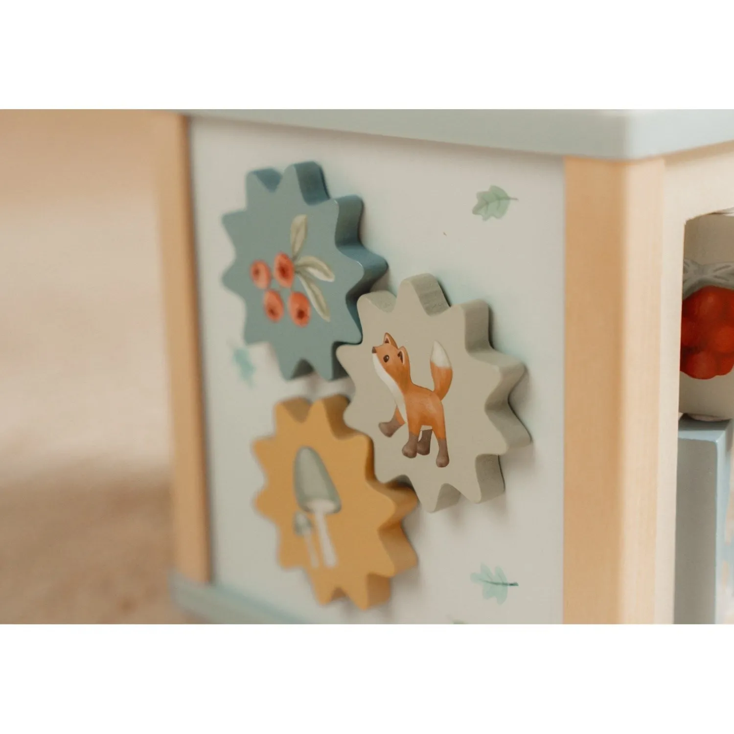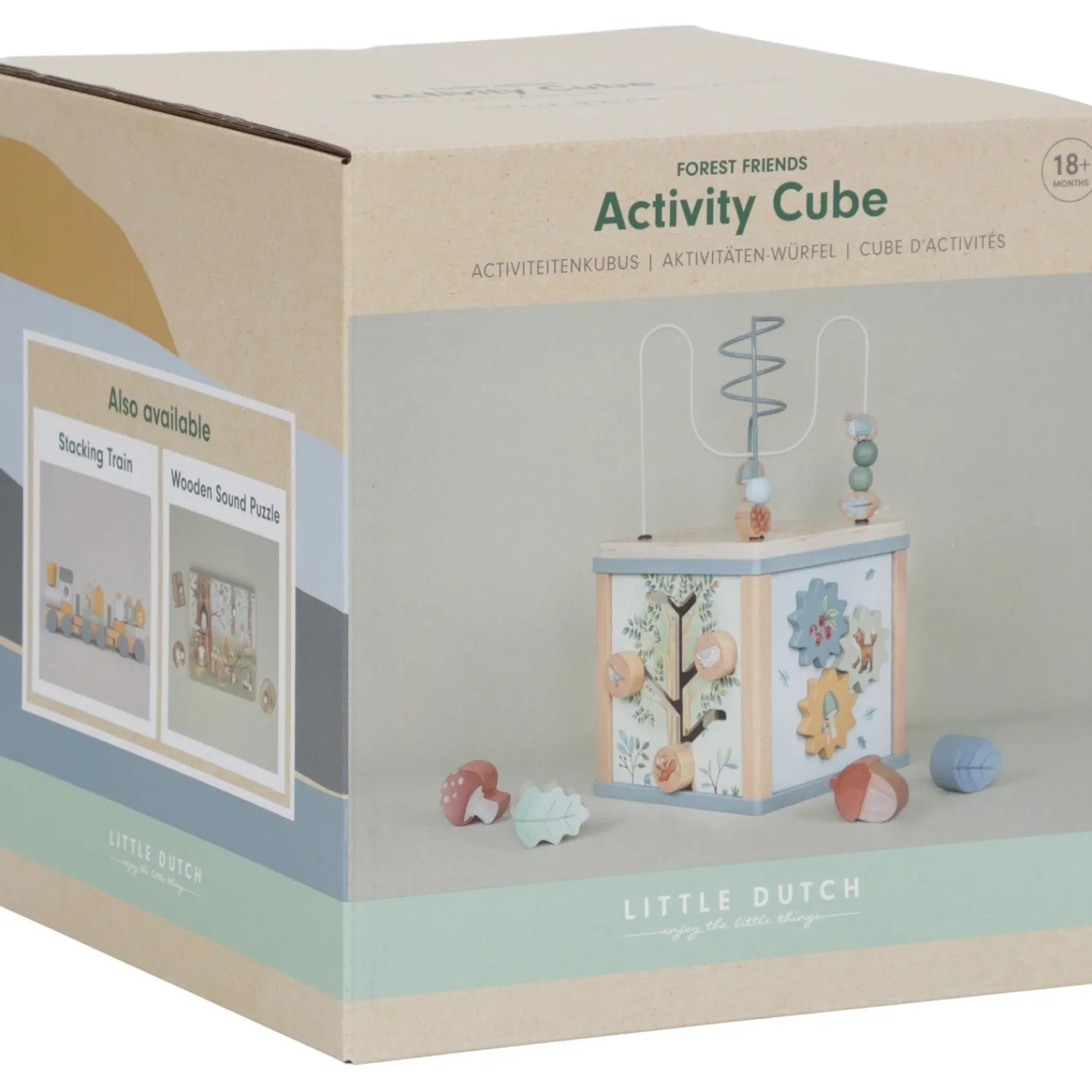 Forestil dig Little Dutch Forest Friends Blue Aktivitetskube – en fantasifuld og lærerig legeoplevelse for de små. Denne farverige aktivitetsterning er fyldt med sjove funktioner, herunder formsortering, roterende tandhjul, et puslespil og en spændende perlelabyrint på toppen.