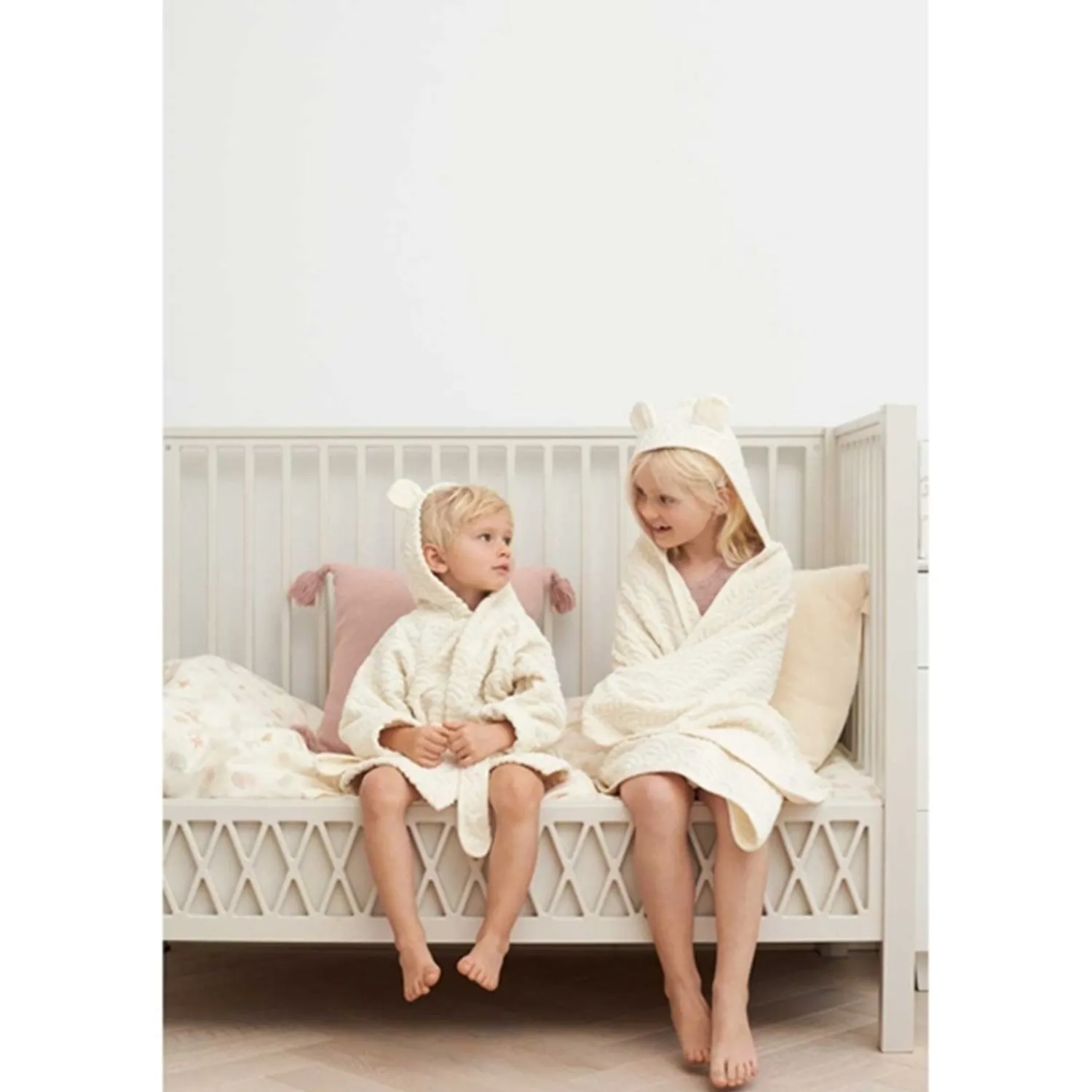 Opdag Cam Cam Copenhagen Håndklæde Junior i den smukke farve Almond. Dette søde håndklæde er designet med en hætte og ører, hvilket gør det ekstra sjovt for børnene. Perfekt til at pakke de små ind efter et dejligt varmt bad.